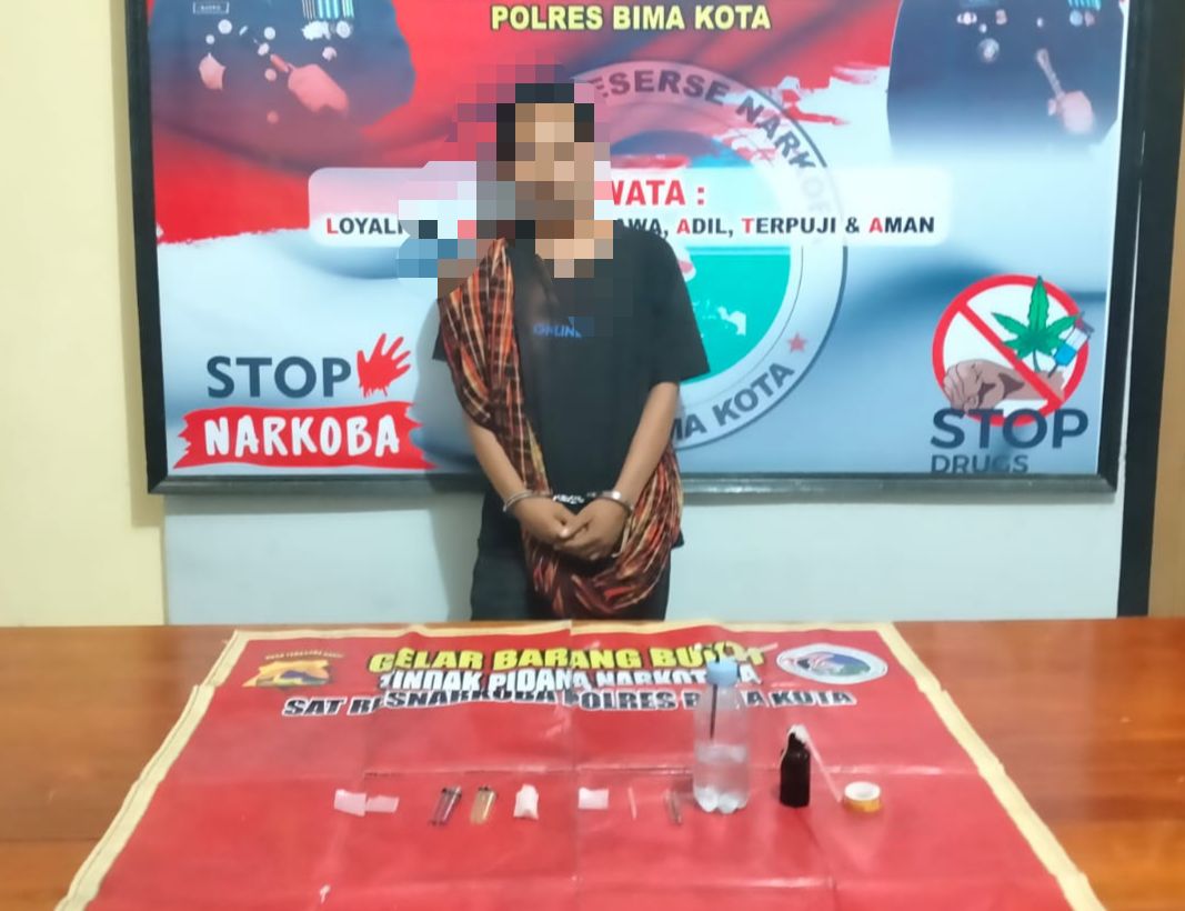 Kota Bima, NTB (14/6) – SL (33) warga Kecamatan Rasanae Barat Kota Bima, ditangkap Tim Opsnal Polsek Rasbar Polres Bima Kota, akibat kedapatan mengantungi narkoba jenis sabu.