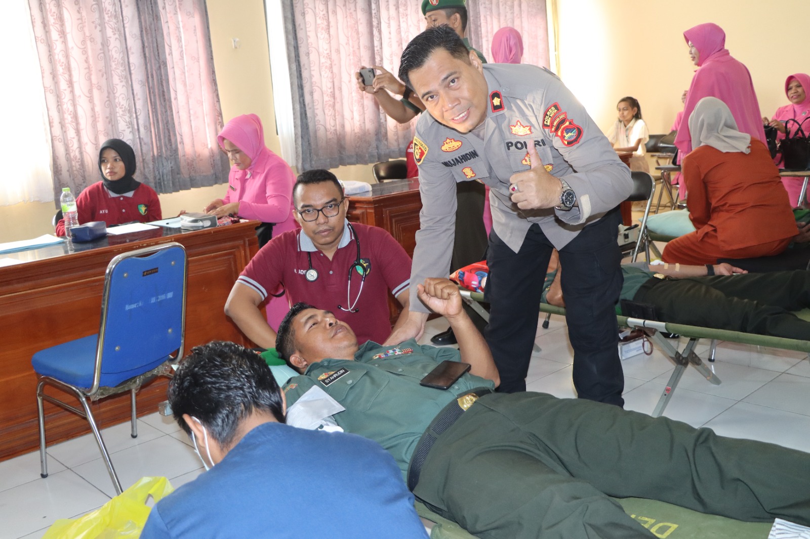 Ratusan personil Polres Bima Kota, silih berganti, mendonorkan darahnya untuk disumbangkan bagi masyarakat yang membutuhkan.