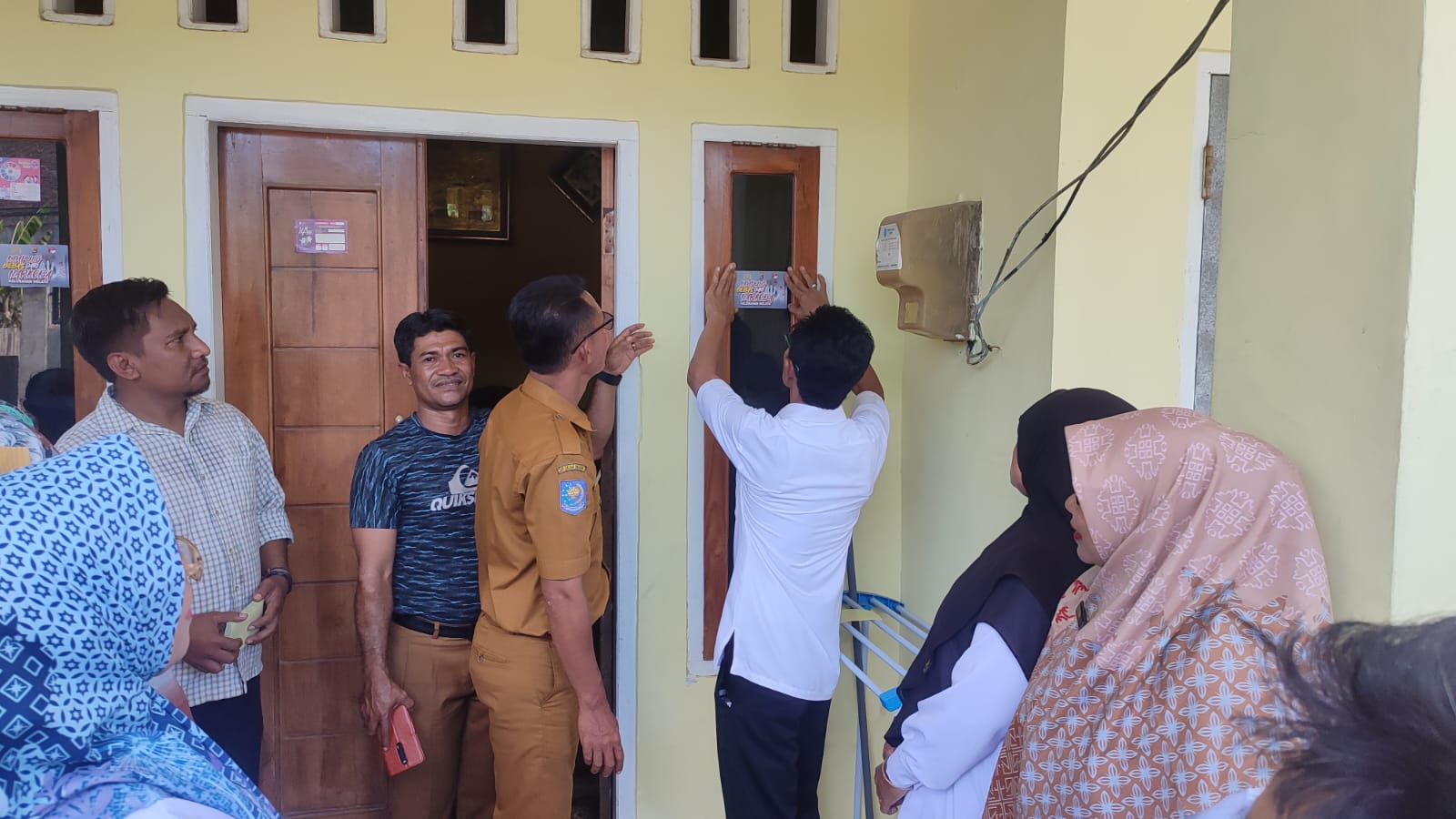 Kasat Resnarkoba beserta anggota, Camat Asakota dan segenap perangkat Lurah Kelurahan Melayu juga melakukan pemasangan stiker himbauan untuk menjauhi penyalahgunaan Narkoba dengan sasaran mendatangi rumah warga masyarakat di RT.08 RW.06 Kel. Melayu.