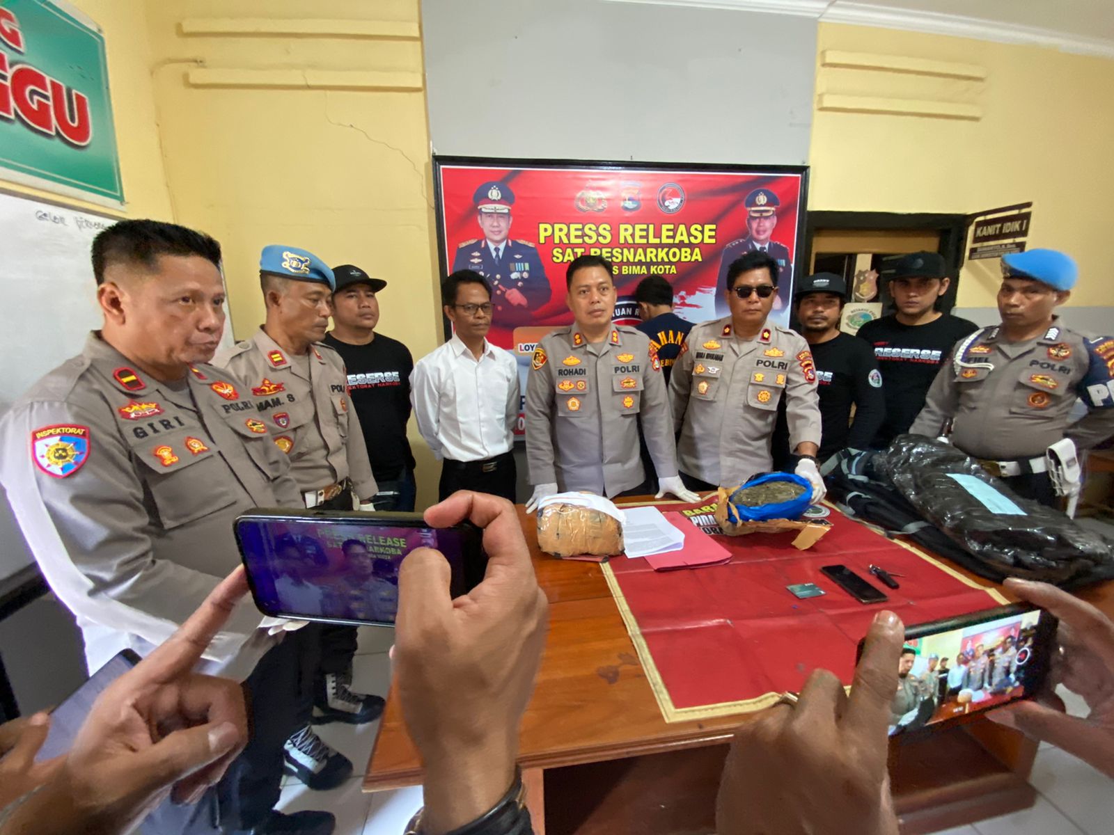 “Kini pelaku berikut barang bukti daun ganja kering dan sejumlah barang bukti lainnya, telah diamankan di Mako Polres Bima Kota untuk ditindaklanjuti sebagaimana hukum yang berlaku,”pungkas AKBP Rohadi.
