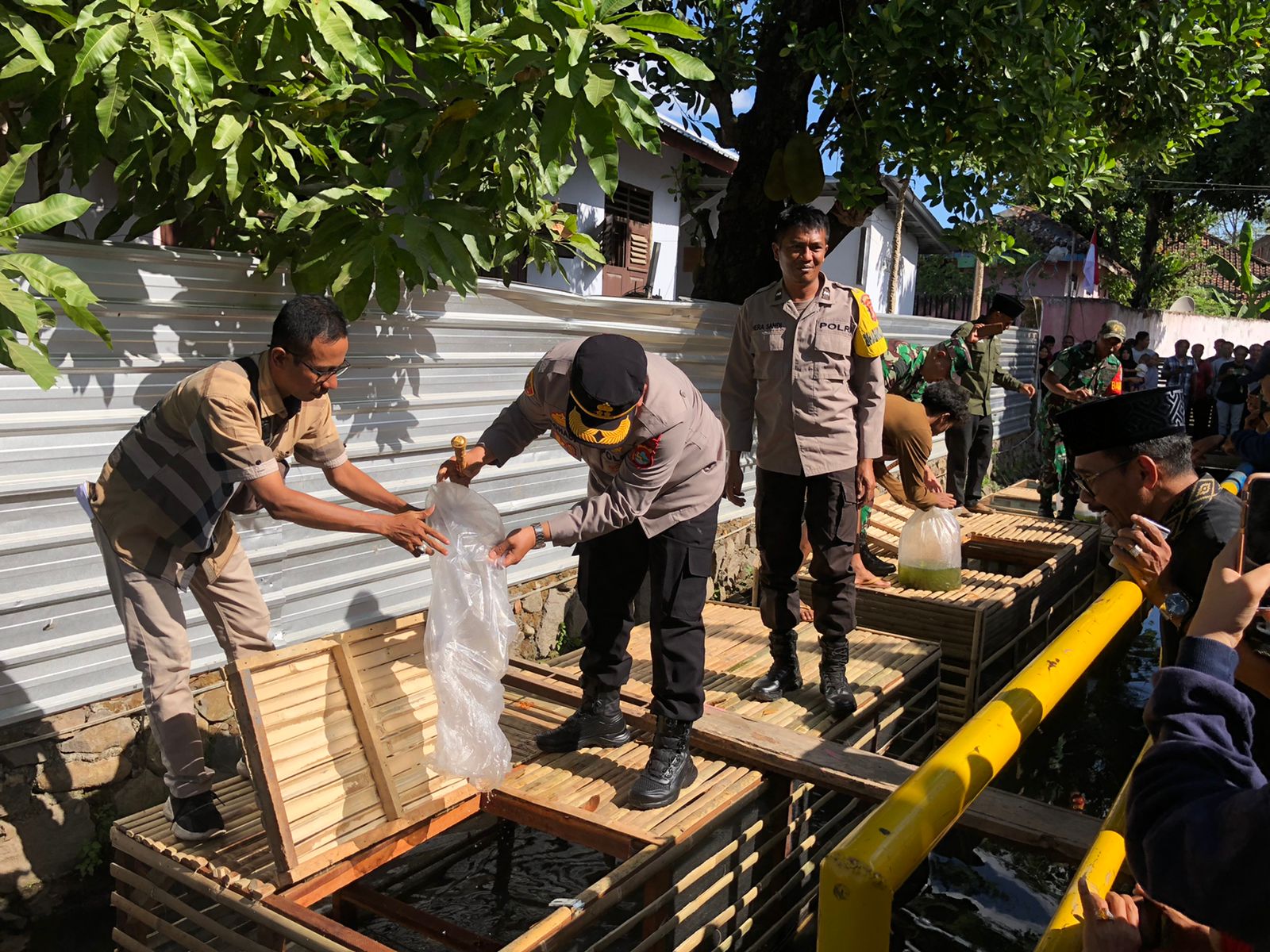 Pelepasan puluhan ribu benih lele, tersebut dihadiri Kapolres Bima Kota AKBP Rohadi.