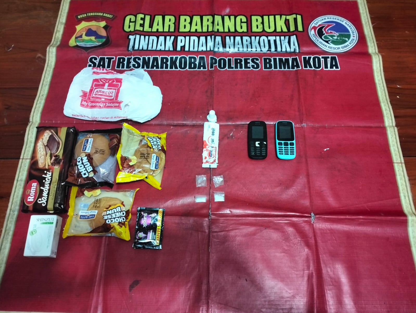Mendapati barang yang dibawa keduanya adalah narkoba jenis sabu, sambung Kasi Humas, petugas jaga Tahti langsung mengejar dan mengamankan keduanya yang masih berada di area Mako Polres Bima Kota.
