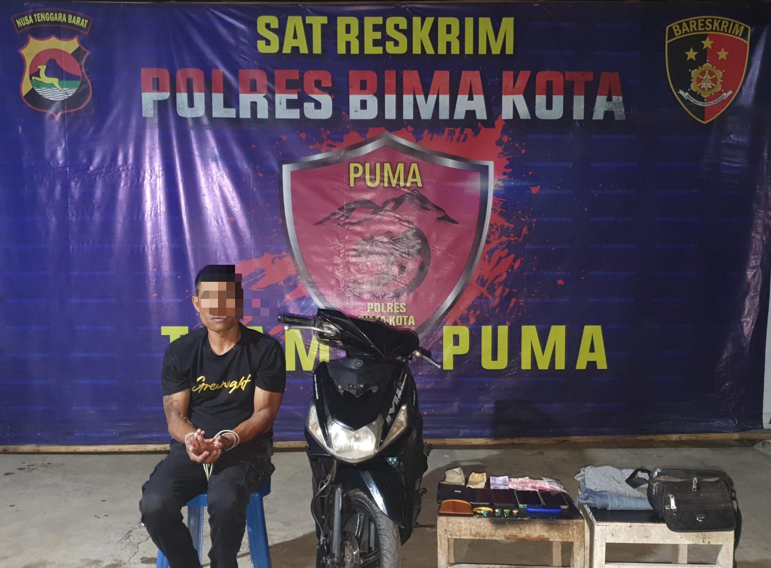Tim Puma 1 dibawah pimpinan Katim Aipda Abdul Hafid dan anggotanya, meringkus BH, akibat mencuri sepeda motor da emas milik korban yang merupakan warga Kota Bima.