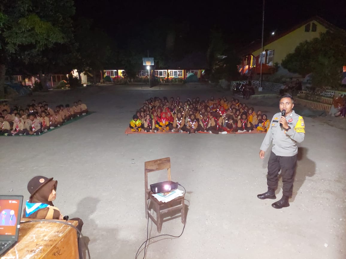 Kota Bima,NTB (13/10) – Personil Polsek Wawo dari Polres Bima Kota turut serta dalam memberikan materi pada kegiatan Kemah di SMPN 1 Wawo. Kegiatan ini diisi oleh Bhabinkamtibmas Desa Maria dan dilaksanakan pada hari Kamis malam sekitar pukul 20.00 WITA.