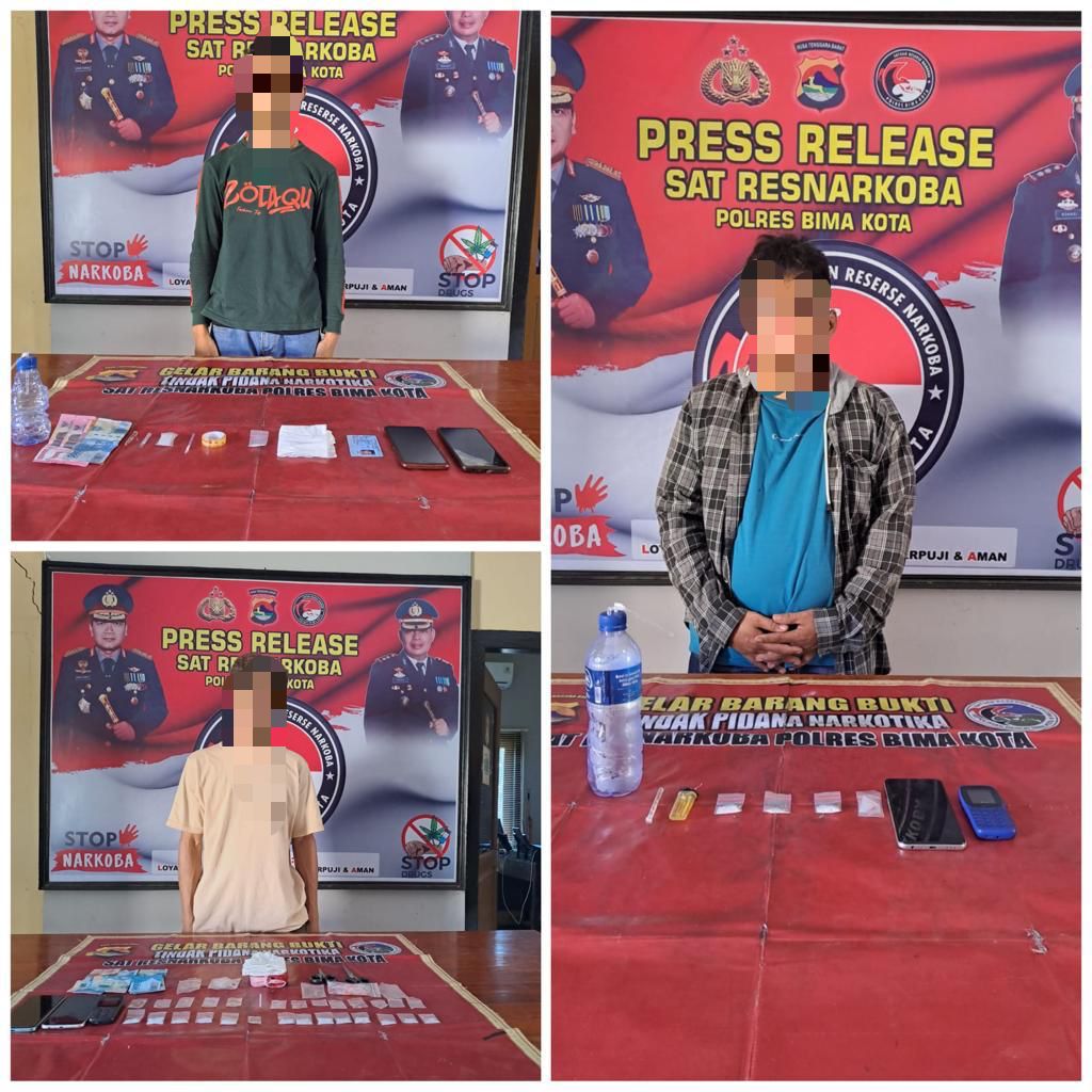 Kota Bima, NTB (15/11) – Tim Opsnal Sat Narkoba Cobra Bravo Polres Bima Kota menunjukkan kinerja luar biasa dalam menanggulangi peredaran narkoba di wilayah hukumnya. Dalam operasi yang dilakukan dalam waktu semalam, tim berhasil menangkap tiga pengedar sabu di tiga tempat kejadian perkara (TKP) yang berbeda.