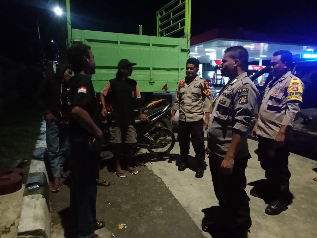 Di SPBU Desa Timu tim melakukan pemeriksaan badan terhadap pemuda yang nongkrong untuk mengatasi adanya senjata tajam yang berakibat terjadinya tawuran antar kelompok.
