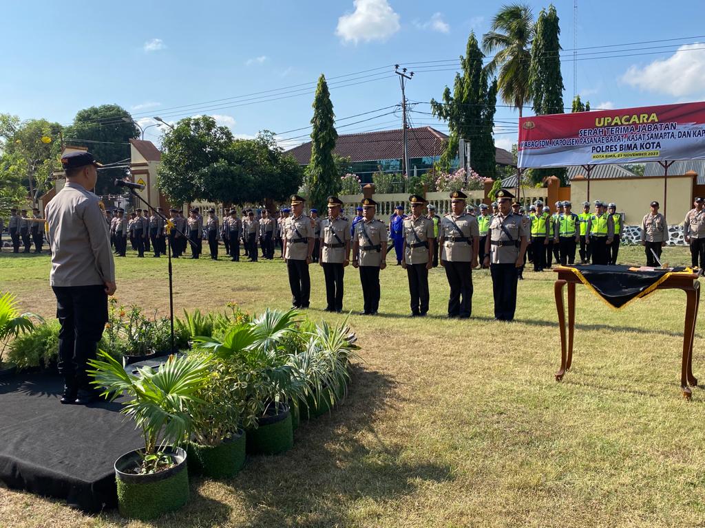 Kegiatan tersebut dipimpin langsung oleh Kapolres Bima Kota, AKBP Rohadi, S.I.K. Serah terima jabatan diatur berdasarkan Keputusan Kepala Kepolisian Daerah Nusa Tenggara Barat Nomor KEP/1108/SEBELAS ROMAWI/2023, tanggal 6 November 2023, dan Nomor KEP/1110/SEBELAS ROMAWI/2023, tanggal 6 November 2023.