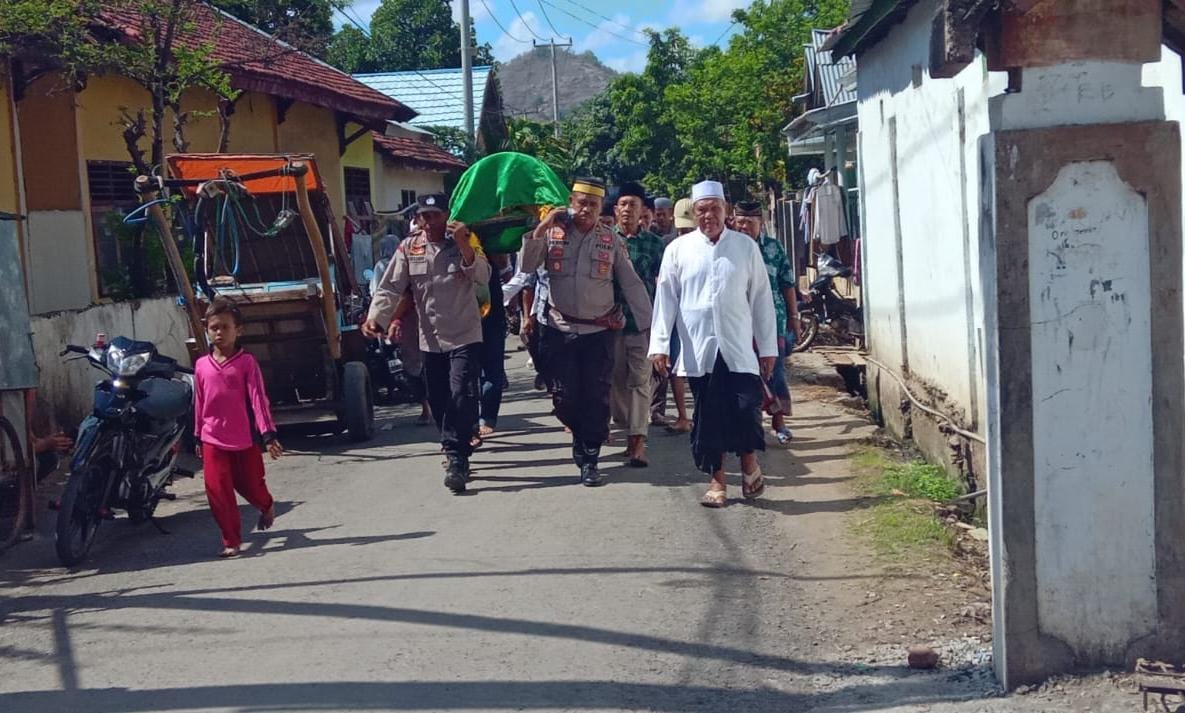 “Saya mewakili bapak Kapolres Bima AKBP Hariyanto, SH., S.I.K.,dan seluruh personel Polres Bima dan Polsek jajaran turut berbelasungkawa atas meninggalnya almarhumah semoga amal ibadah almarhumah diterima oleh Allah SWT serta keluarga yang ditinggalkan diberi ketabahan dan kesabaran”. ujar Kapolsek.