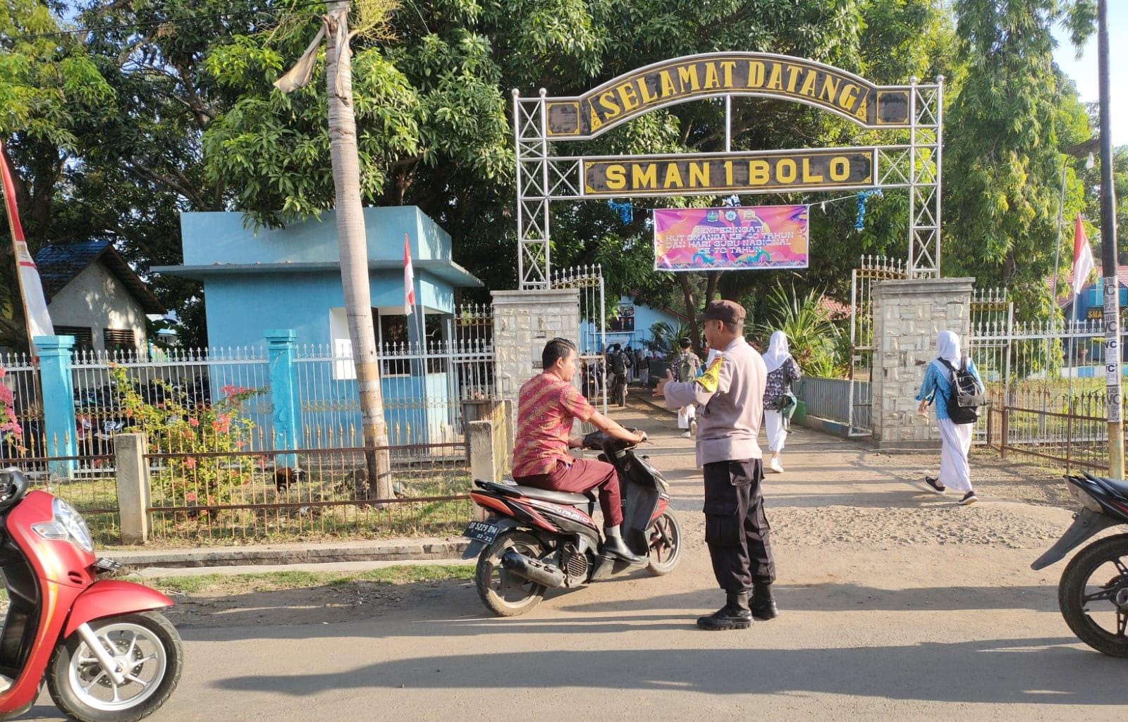 Bima, NTB (30/11) – Guna ciptakan keamanan dan ketertiban berlalu lintas saat masyarakat memulai aktivitas pagi hari, Polsek Bolo polres Bima Polda NTB melaksanakan pengaturan lalu lintas di simpul jalan dan didepan sekolah.