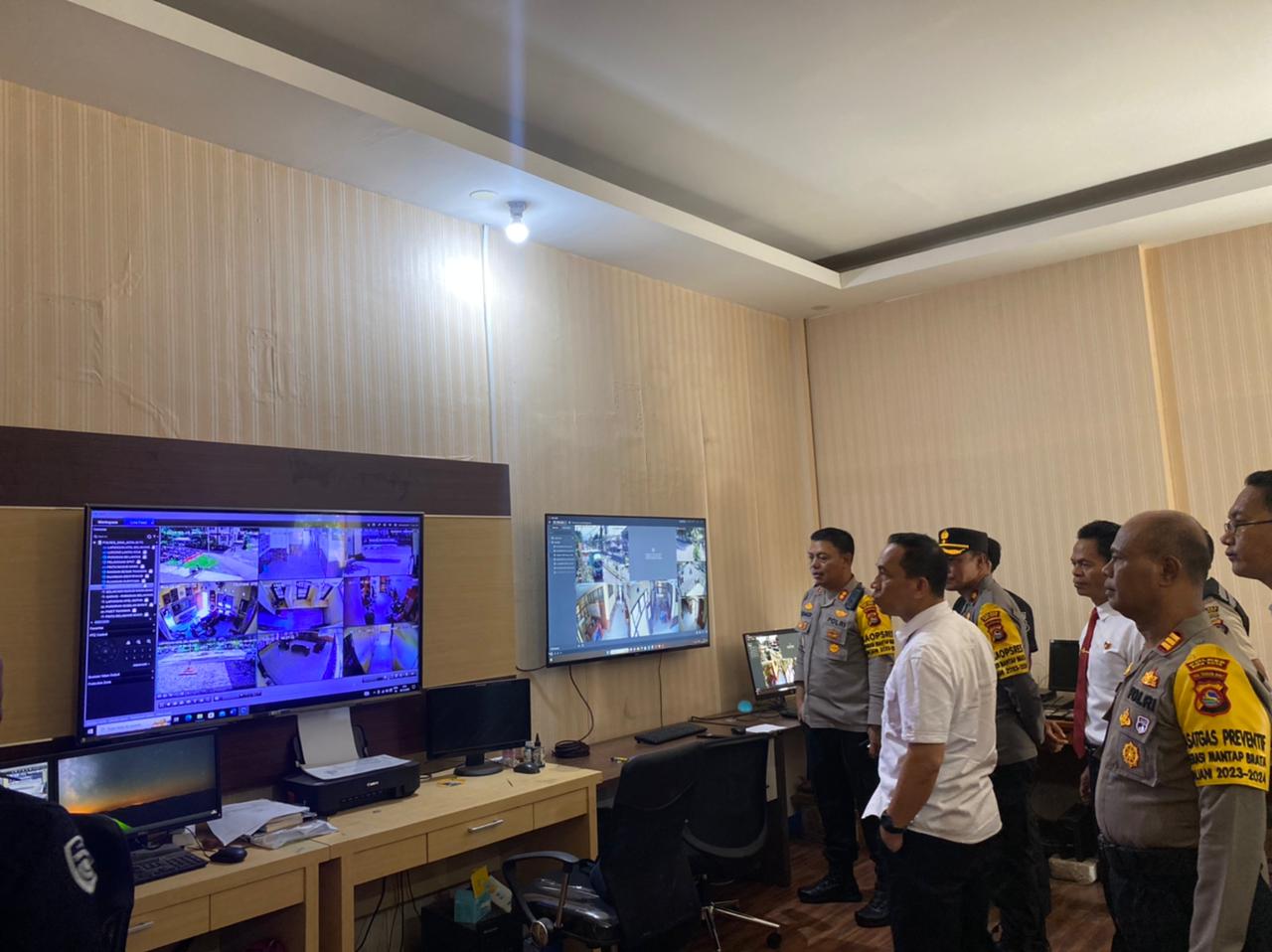 Kota Bima, NTB (18/12) – Kapolres Bima Kota, AKBP ROHADI, S.I.K., didampingi oleh Ketua Pengadilan Negeri Raba Bima dan Pejabat Utama (PJU) Polres Bima Kota, melaksanakan pengecekan dan monitoring Command Center serta kondisi Closed-Circuit Television (CCTV) di dalam lingkup Mako Polres Bima Kota. Kegiatan ini dilaksanakan pada hari Senin, pukul 09.20 WITA, di ruangan Command Center Polres Bima Kota.