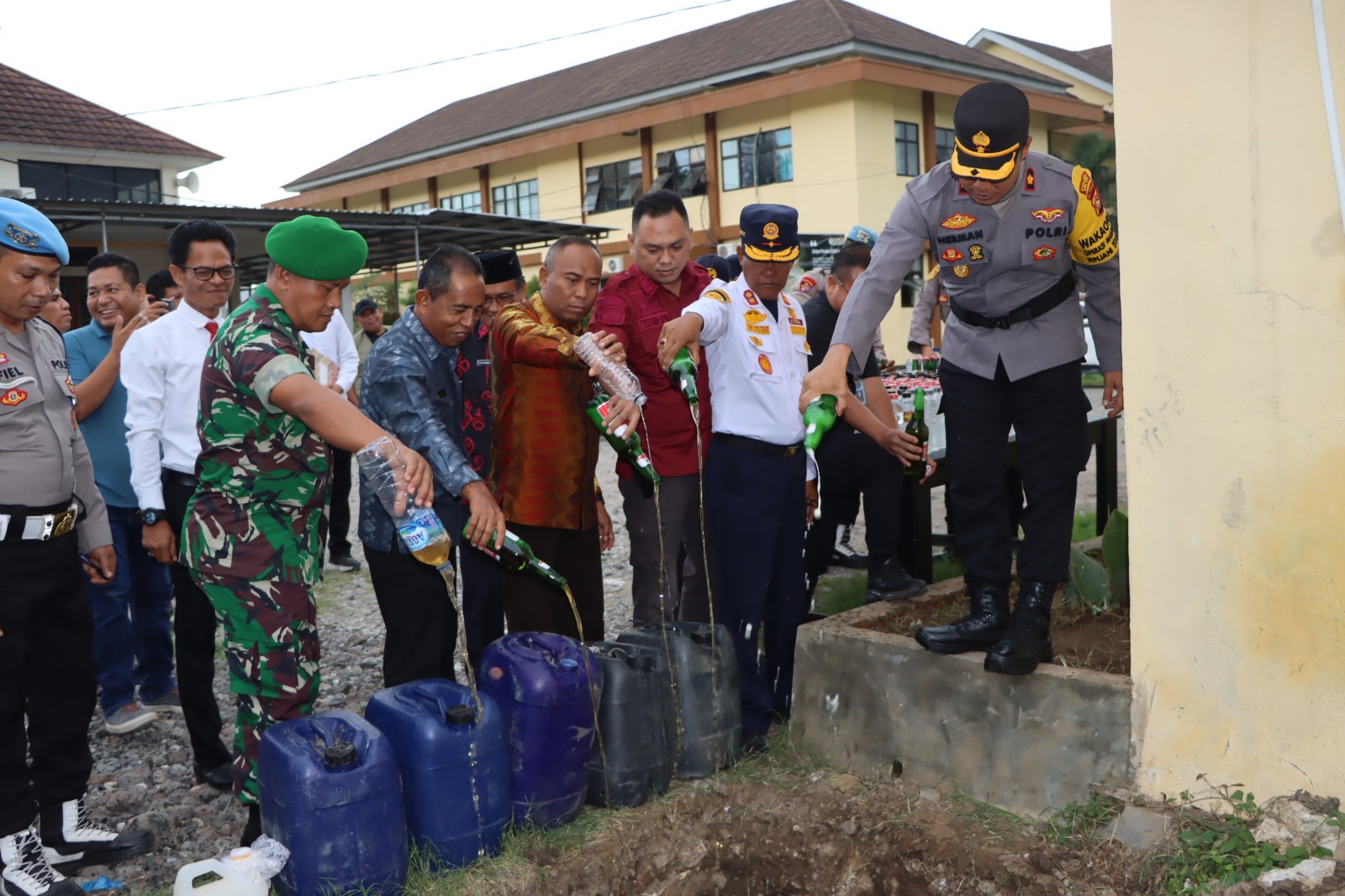 Kota Bima, NTB (21/12) – Polres Bima Kota memastikan kelancaran perayaan Natal dan Tahun Baru (Nataru) dengan menggelar operasi pemusnahan ribuan botol minuman keras (miras) berbagai jenis yang berhasil digagalkan peredaran dan penjualannya. Kegiatan ini dilakukan secara serentak di seluruh Indonesia sebagai langkah preventif dalam rangka pengamanan perayaan Nataru.