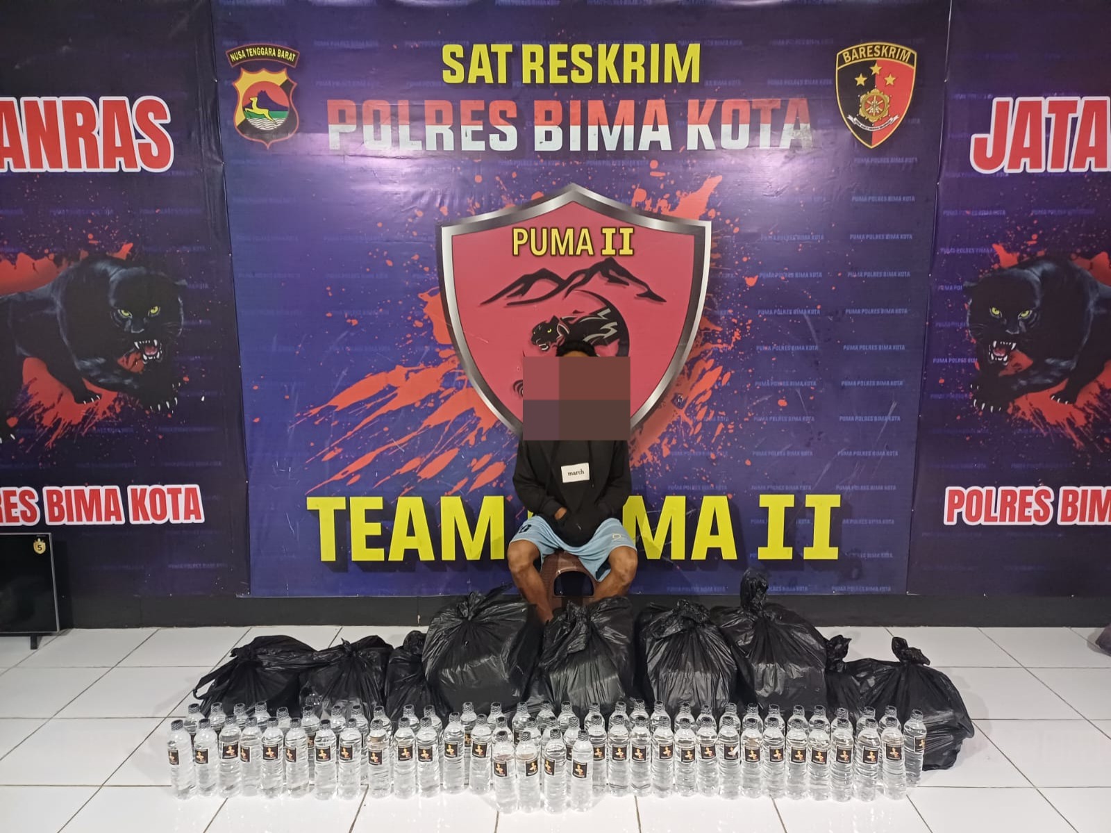Tim Puma 2 melakukan penyelidikan dan menggerebek rumah yang menjadi laporan dari warga. Operasi ini dilakukan dengan efektif, dan hasilnya adalah penangkapan pemilik beserta barang bukti Arak Bali. Seluruh barang bukti dan tersangka telah diamankan di Mako Polres Bima Kota untuk proses hukum lebih lanjut.