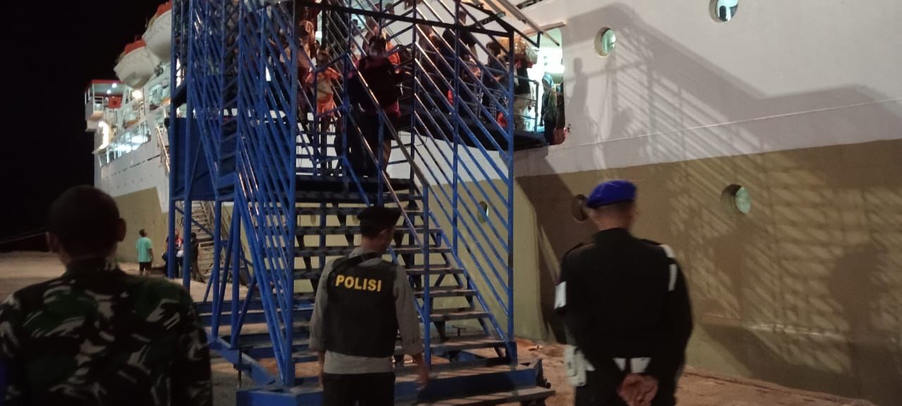 Kota Bima, NTB (09/1) – Polsek Kawasan Laut Polres Bima Kota melaksanakan pengamanan pemberangkatan Kapal Motor (KM) AWU di Pelabuhan Laut Bima. Kegiatan ini dilakukan dalam rangka memastikan kelancaran proses embarkasi dan debarkasi penumpang yang datang dari Pelabuhan Waingapu dan bertujuan ke Pelabuhan Benoa Bali.