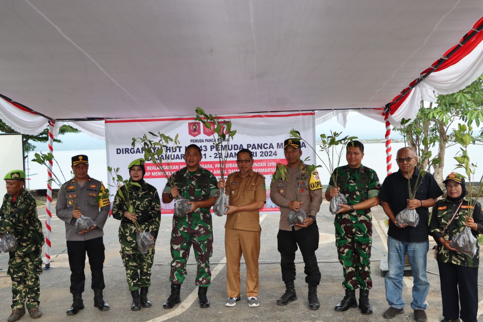 Bima, NTB (23/1) – Bertempat di pantai Amahami kota Bima Kapolres Bima Polda NTB, AKBP Eko Sutomo SIK. MIK.menghadiri puncak penanaman Mangrove dalam rangka HUT Ke- 43 Pemuda Panca Marga Senin (22/01/24) sekira pukul 07.00.Wita Pagi Kemarin.