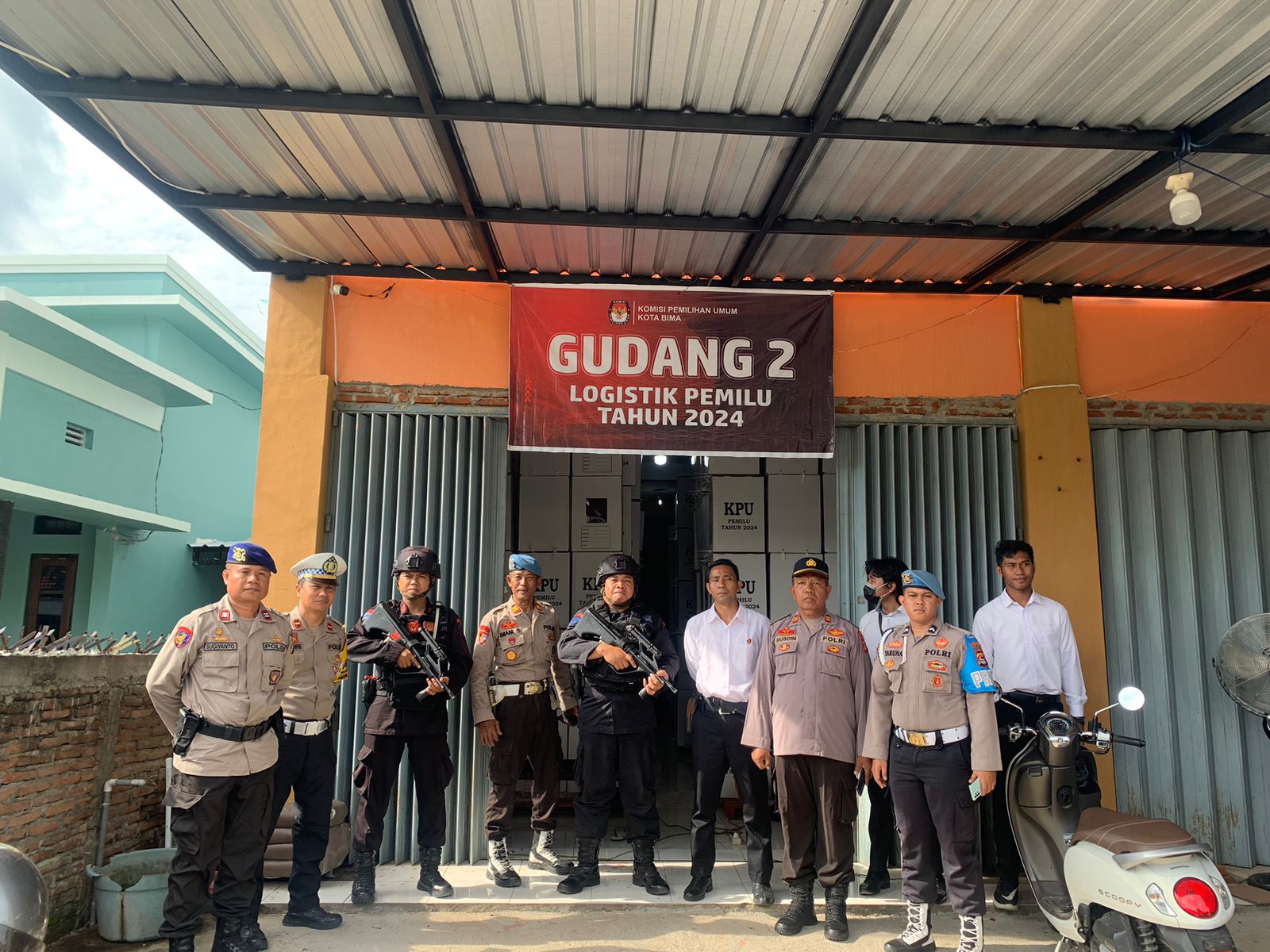 Personel Polres Bima Kota melakukan sambang dan patroli di sekitar Gudang Logistik Pemilihan Umum Tahun 2024 yang berada di Kota Bima. Langkah ini sebagai bentuk kesiapan aparat kepolisian dalam menghadapi potensi gangguan yang mungkin terjadi, seperti sabotase atau tindakan kriminal lainnya.