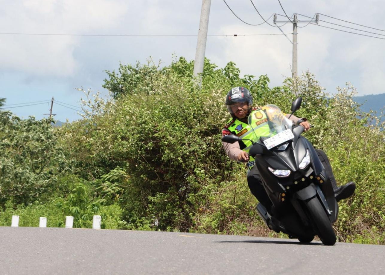 Perdana, Dalam Sehari Kapolres Bima AKBP Eko Sutomo SIK.MIK. Kunker di Polsek Bolo, Tambora dan Sanggar Tunggangi Sepeda Motor