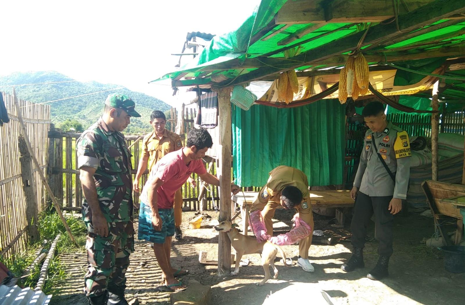 Dalam kesempatan itu bhabinkamtibmas dan Babinsa bersama tim vaksinasi memberikan sosialisasi terkait bahaya dan penyakit yang disebabkan oleh gigitan Anjing Rabies pada manusia dan hewan ternak.