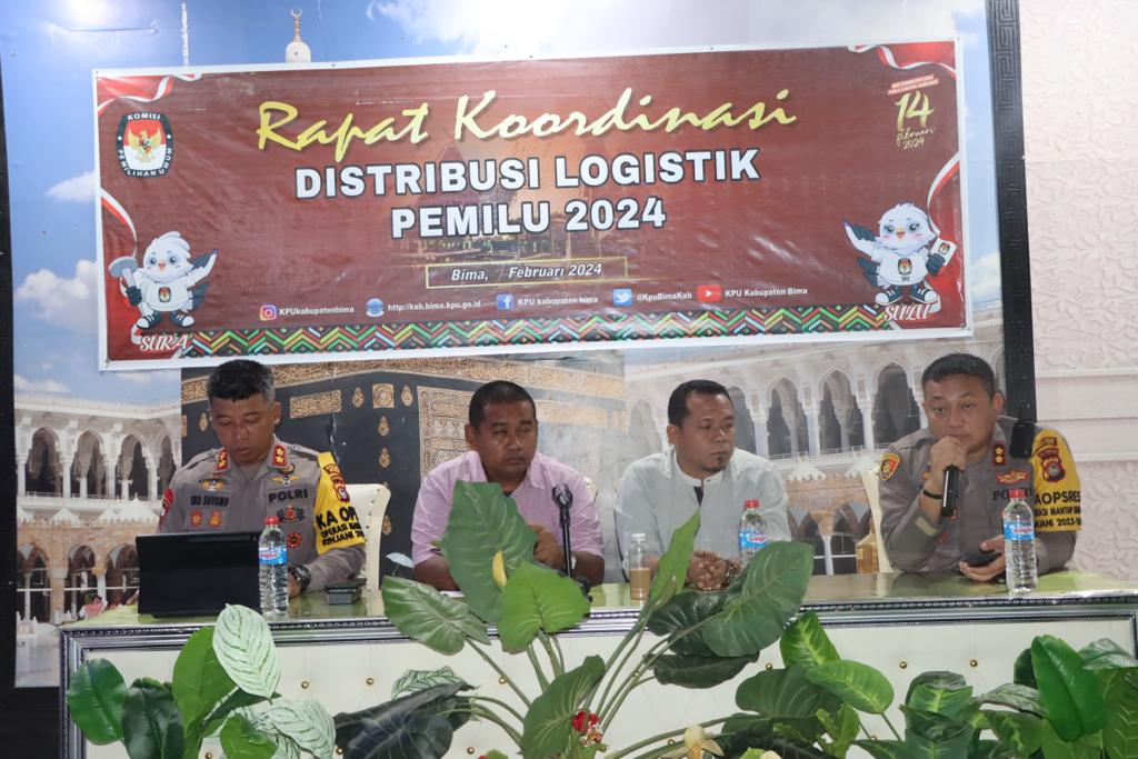 Kapolres Bima, AKBP Eko Sutomo, S.I.K, M.I.K, menegaskan bahwa Polres Bima telah menyiapkan personil untuk kebutuhan pendistribusian logistik serta siap mengawal sampai dengan TPS. Dalam kesempatan tersebut, Kapolres juga mengajak kerja sama dari kalangan media untuk menangkal berita hoax yang dapat mengganggu jalannya pemilu. Situasi di wilayah hukum Kabupaten Bima masih terpantau kondusif, dan Polres Bima telah siap mengawal pergeseran logistik pemilu hingga ke TPS.