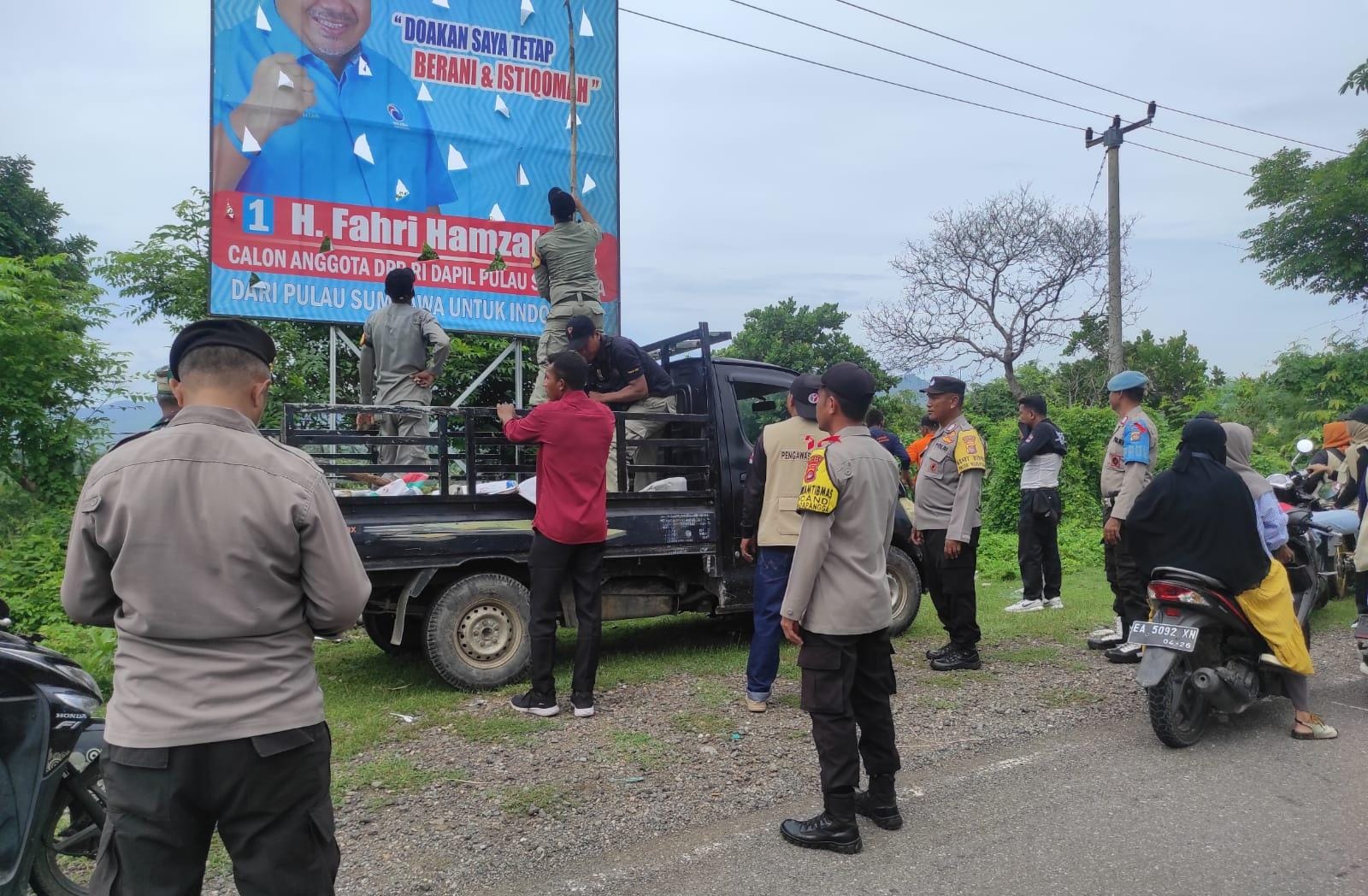 “Untuk jajaran Polsek dan Muspika yang ikut dalam tim penertiban APK ini jangan bertindak diluar ketentuan yang telah ditetapkan oleh Bawaslu dan jajaran, tetapi lakukanlah penertiban tersebut sesuai dengan arahan dan perintah yang diberikan oleh Bawaslu dan jajaran agar tidak terjadi kesalahpahaman dan permasalahan dikemudian hari”, terang Kapolsek.