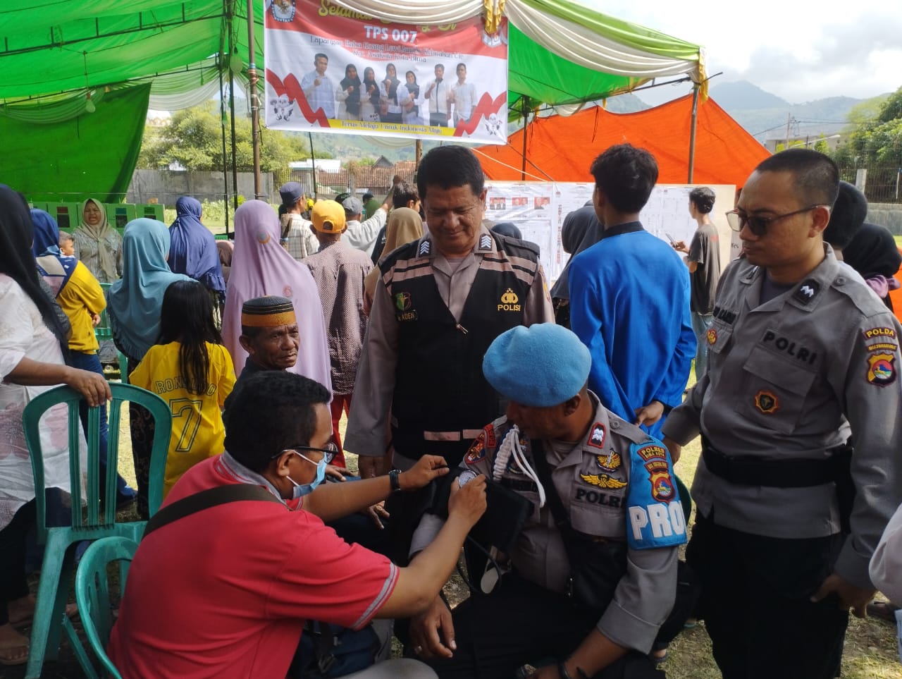 Kota Bima, NTB (19/2) – Seksi Kedokteran Kesehatan (Sie Dokkes) Polres Bima Kota telah melakukan pemeriksaan kesehatan terhadap personel TNI-Polri dan petugas lain yang bertugas dalam mengamankan pelaksanaan Pemilihan Umum (Pemilu).