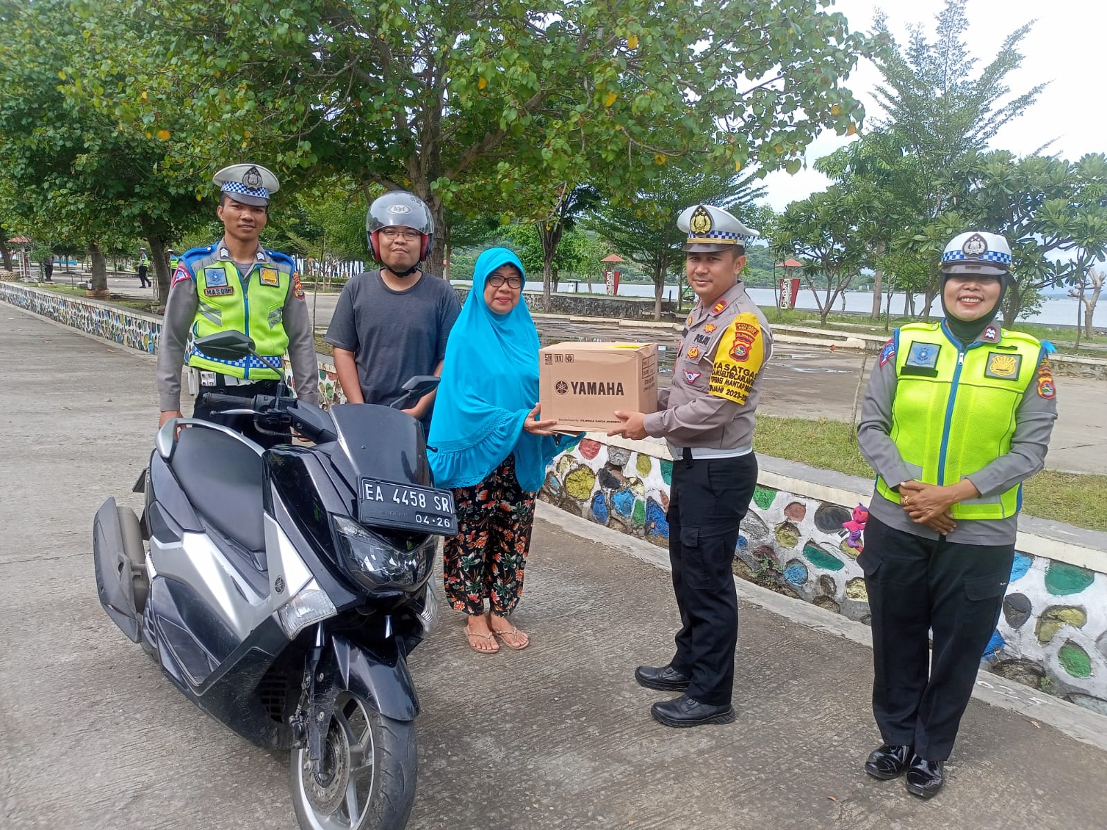 Kota Bima, NTB (09/3) – Di depan Mesjid Terapung Amahami Kota Bima, berlangsung kegiatan sosialisasi kamseltibcarlantas dan pembagian Helm SNI (Standar Nasional Indonesia) dalam rangka Operasi Keselamatan Rinjani 2024, Pada Sabtu, 9 Maret 2024, pukul 09.00 WITA,.