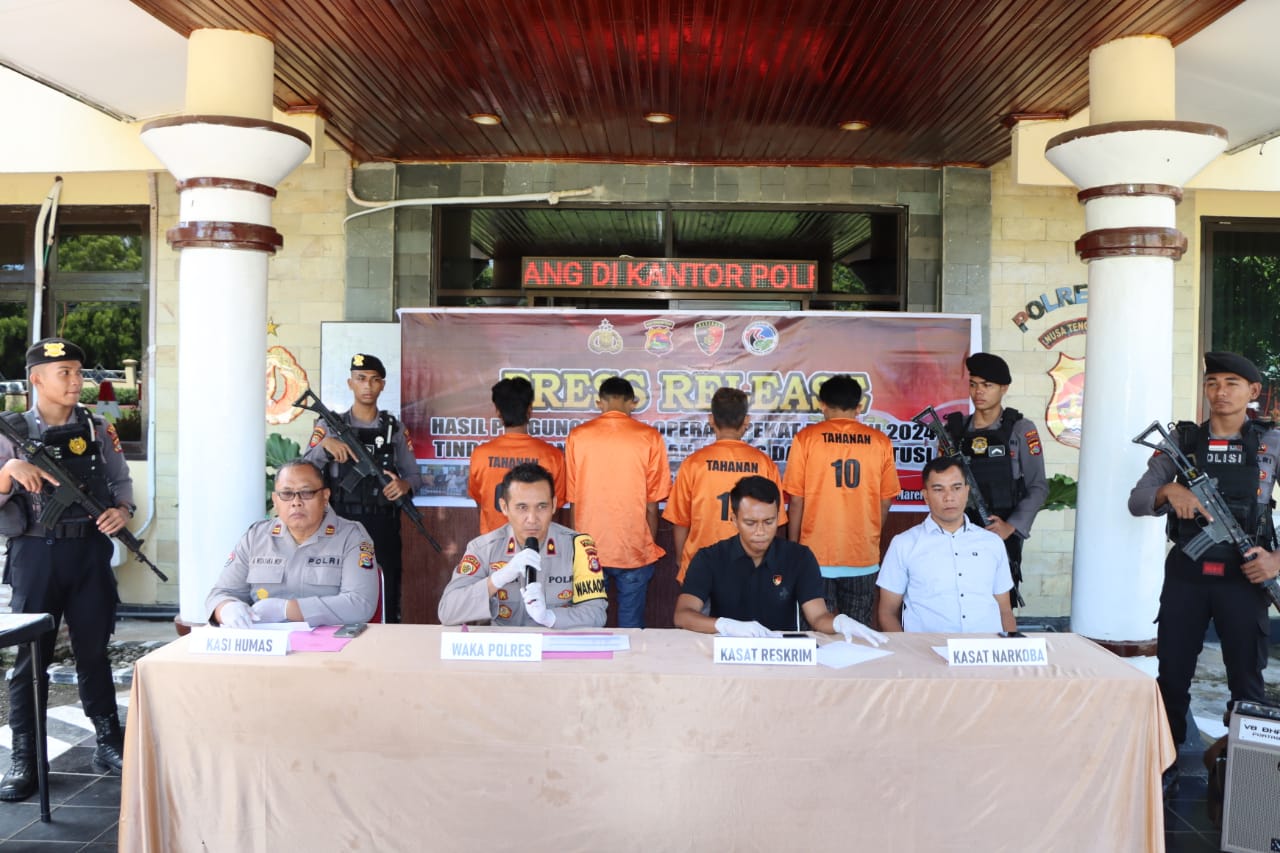 Bima, NTB (20/3) Kepolisian Resor Bima Polda NTB berhasil mengungkap 15 kasus selama digelarnya Operasi Pekat Rinjani Tahun 2024 ini, serta menetapkan 15 orang sebagai tersangka.