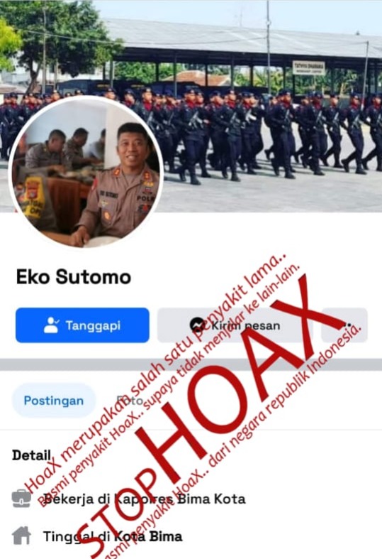 Akun palsu yang beredar tersebut mengatasnamakan Kapolres AKBP Eko Sutomo SIK, MIK., di Media sosial Facebook dengan akun Eko Sutomo dan akun Facebook itu bukan milik Kapolres Bima Ujar Adib.