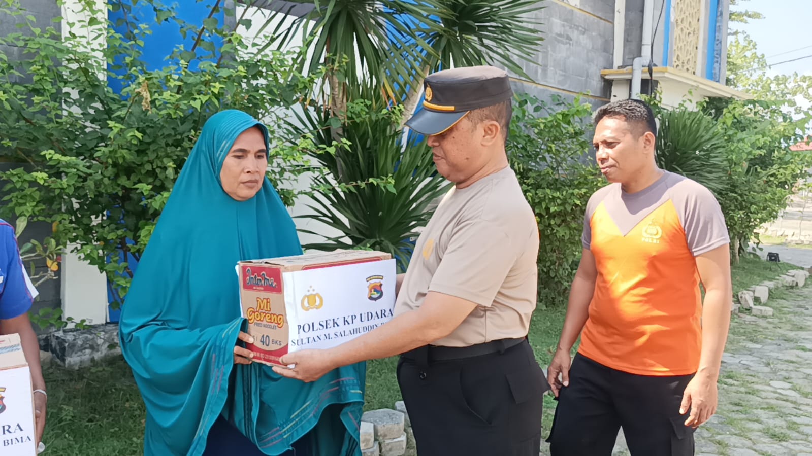 Selain itu Kapolsek KP3 Bandara SMS Bima AKP Guntur menyerahkan bingkisan kepada pengurus Masjid.