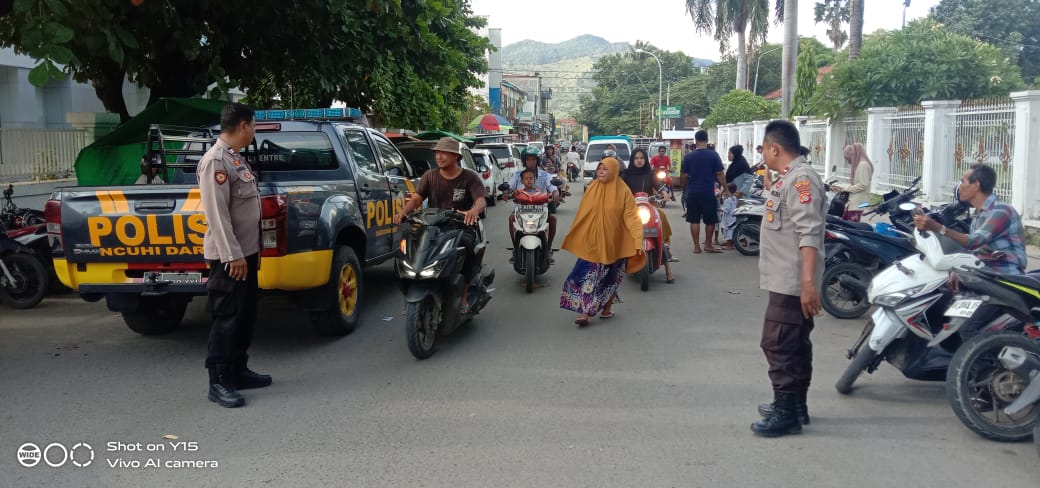 Personel Polsek Rasanae Barat Lakukan Patroli Ngabuburit di Pusat Jajanan Takjil di Kota Bima