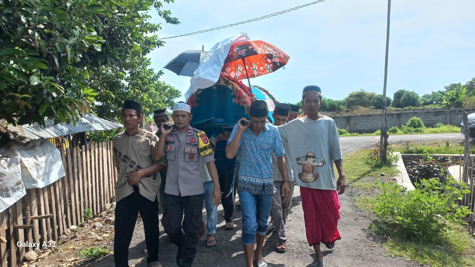 Terlihat Aipda Aswad S.IP bersama warga binaannya membantu prosesi pemakaman dan ikut menandu jenazah Almarhum hingga ketempat peristirahatan terakhirnya di TPU Desa Setempat.