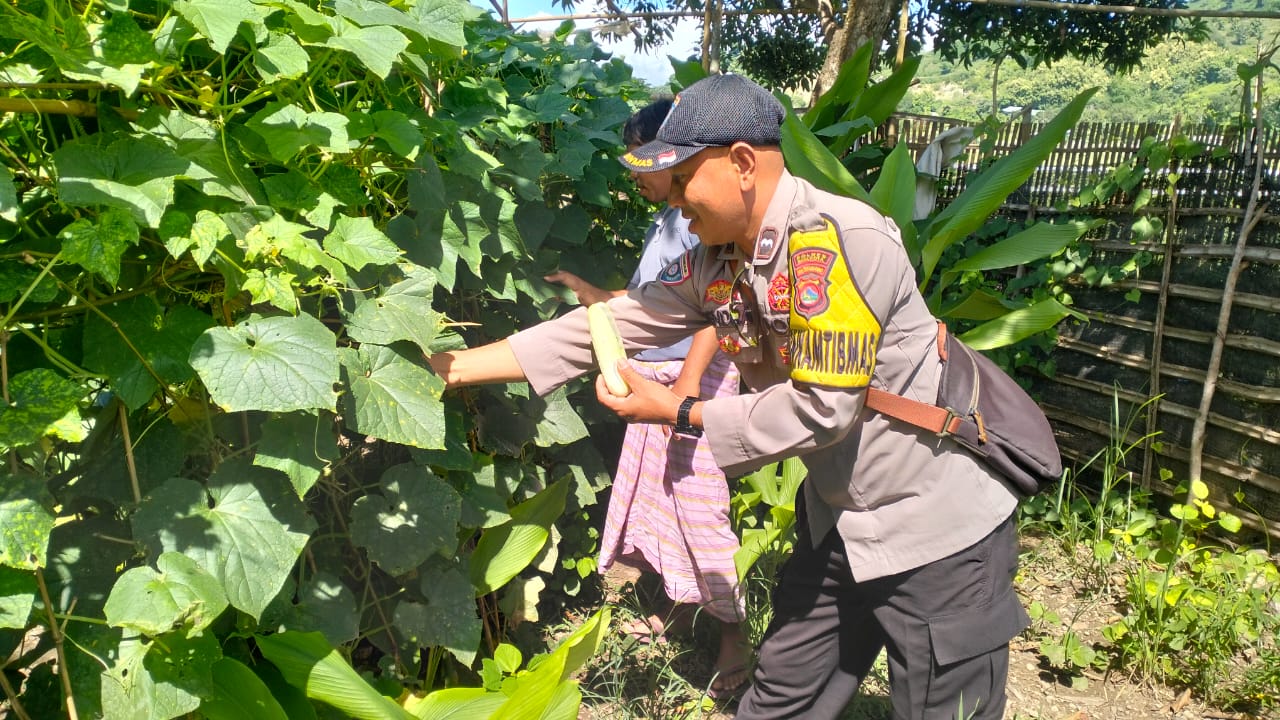 Dalam kesempatan tersebut, Bhabinkamtibmas melakukan pengecekan terhadap perkebunan milik Sdr. Rizal, seorang warga yang berprofesi sebagai pekerja swasta dan beralamat di RT 04/02, Kelurahan Sambinae. Lahan pekarangan yang dimanfaatkan oleh Rizal ditanami berbagai jenis tanaman pangan bergizi, antara lain timun, kacang panjang, jagung, pisang, serta tanaman jahe.