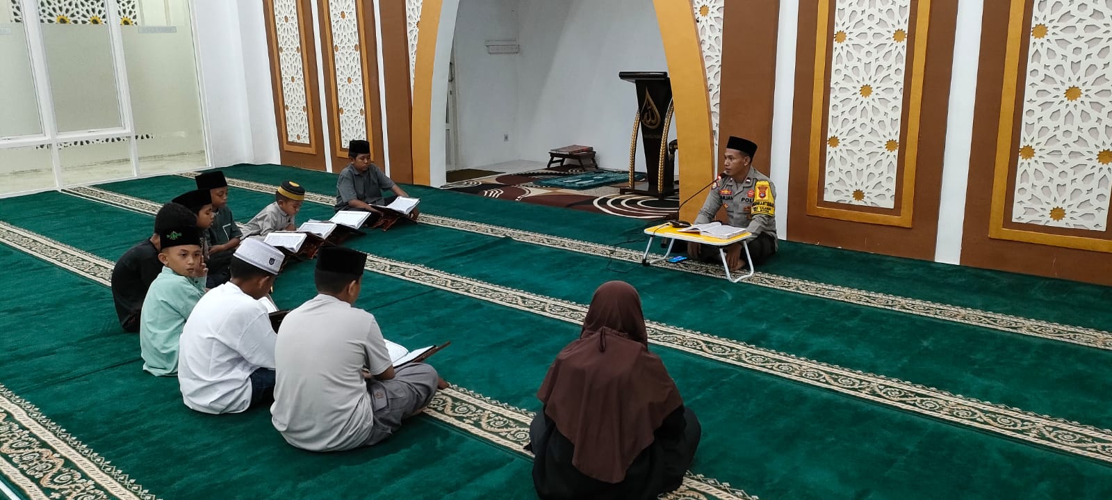 Salah satunya seperti yang dilakukan oleh Aipda Sarjan yang melakukan kegiatan diluar tugas Kepolisian dengan semangat memberikan pelajaran mengaji iqro dan ilmu agama islam kepada anak-anak.