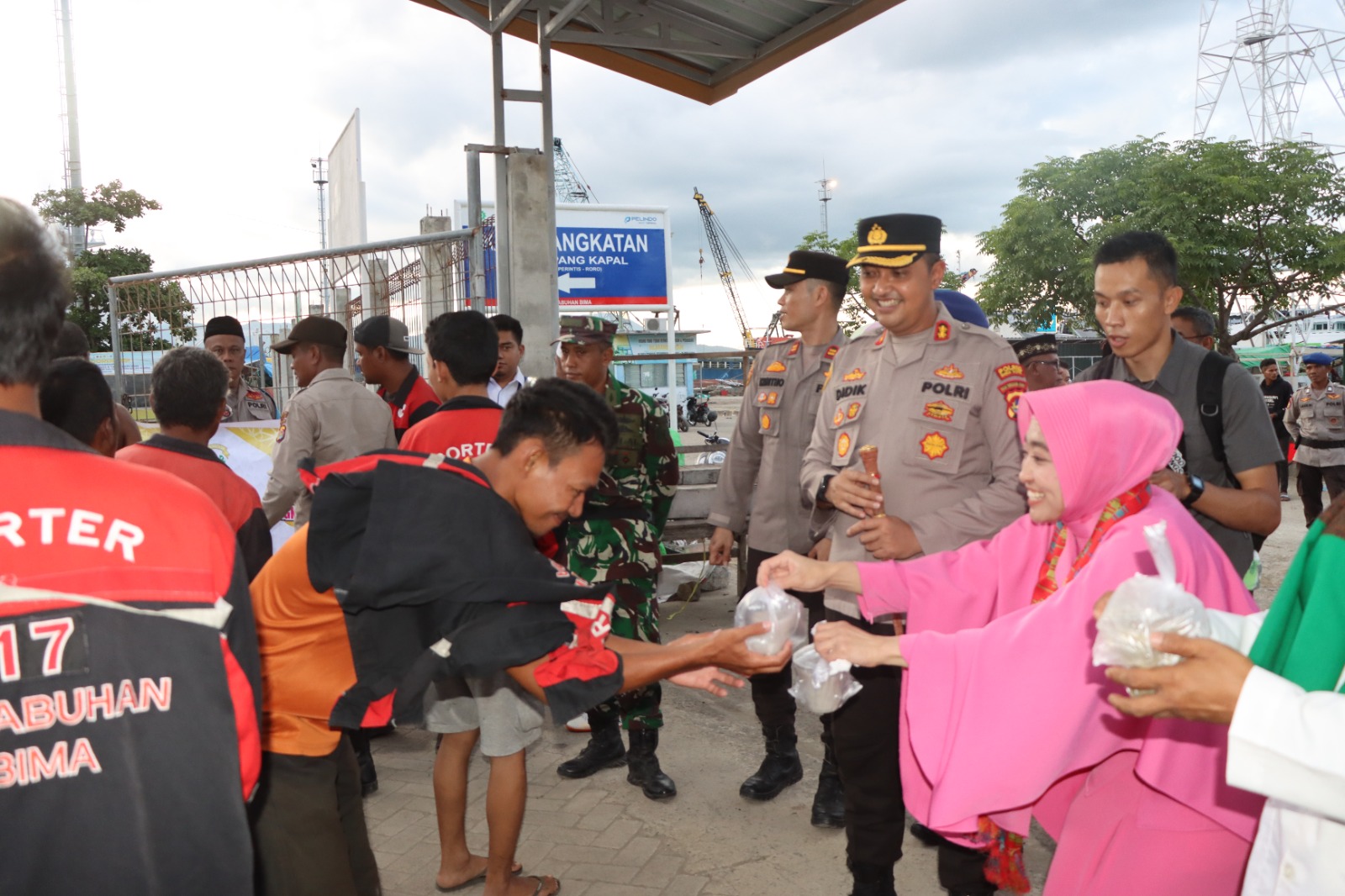 Kapolres Bima Kota dan Ketua Bhayangkari Berbagi Takjil serta Buka Puasa Bersama Porter di Pelabuhan Laut Bima