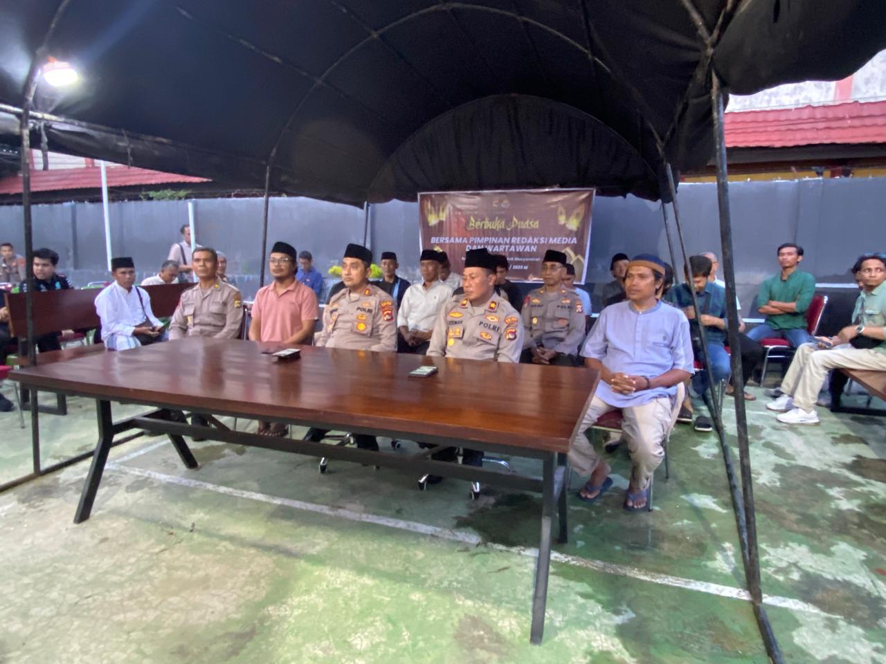Sebelum acara buka puasa bersama yang berlangsung di Rumah Dinas Kapolres Bima Kota, Kapolres AKBP Didik Putra Kuncoro bersama para insan pers mengikuti prosesi buka bersama yang diselenggarakan oleh Mabes Polri secara virtual.