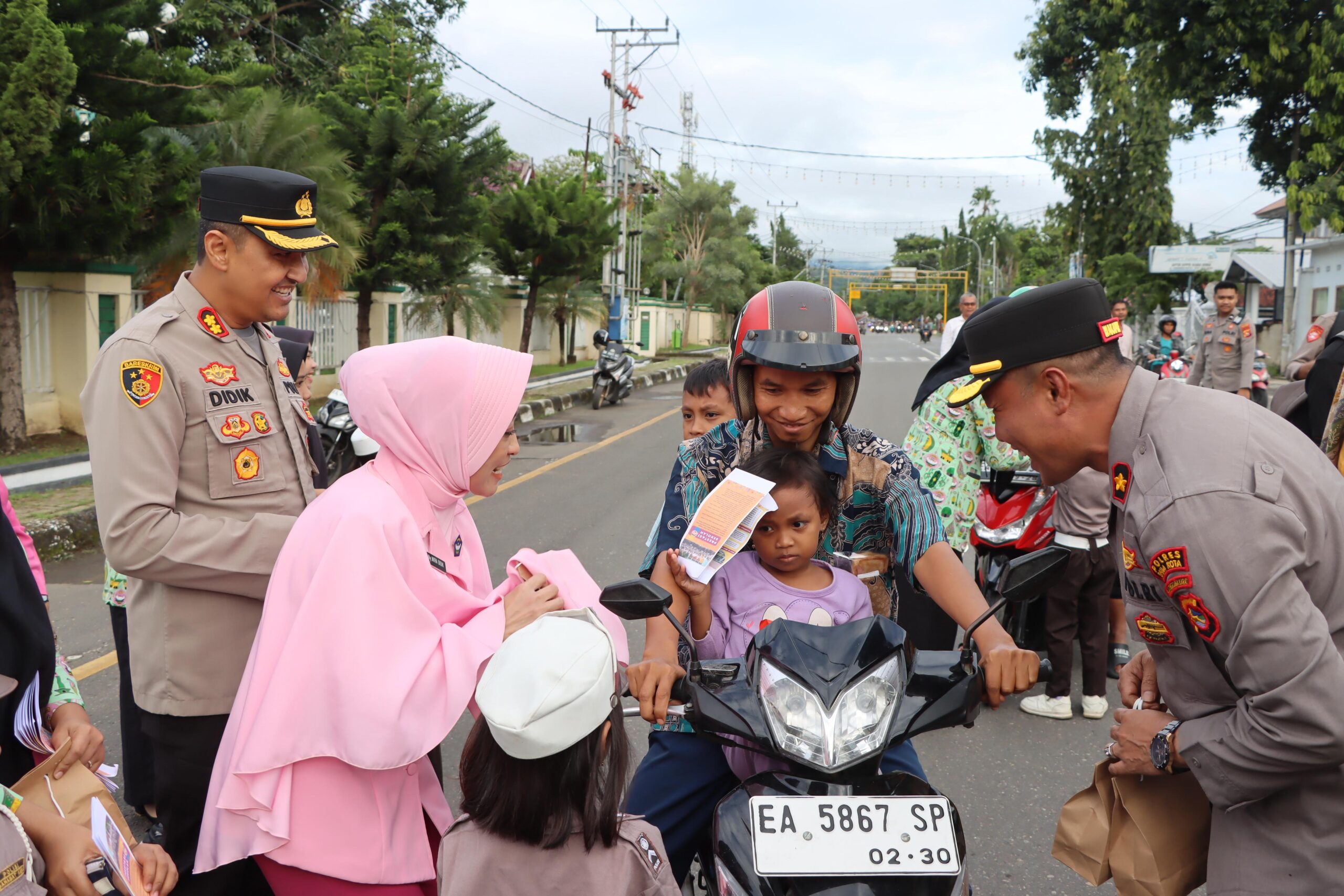 Kegiatan ini semakin istimewa dengan kehadiran Polisi Cilik dari TK Kemala Bhayangkari 06 Cabang Bima Kota, yang turut serta membagikan takjil kepada para pengendara yang melintas. Didampingi oleh Bhayangkari Cabang Bima Kota, para siswa terlihat antusias dan penuh semangat saat berinteraksi dengan masyarakat.