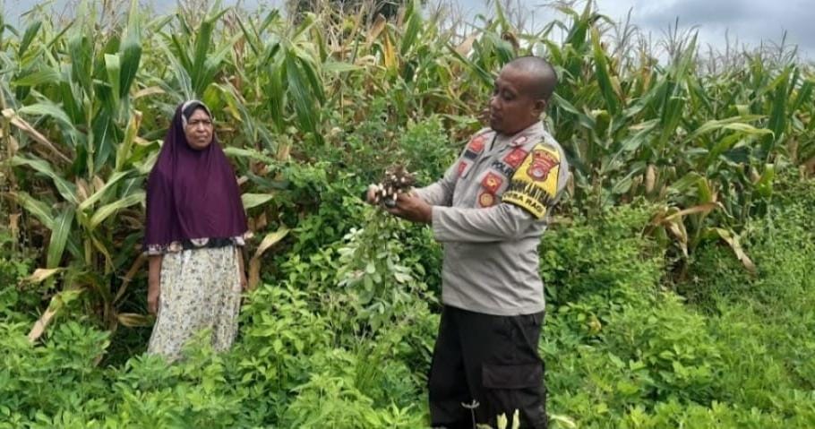 Dalam kegiatan tersebut,Bripka Hermanus turut memberikan himbauan kepada petani agar terus mengembangkan sektor pertanian guna menjaga stabilitas pangan di wilayahnya.