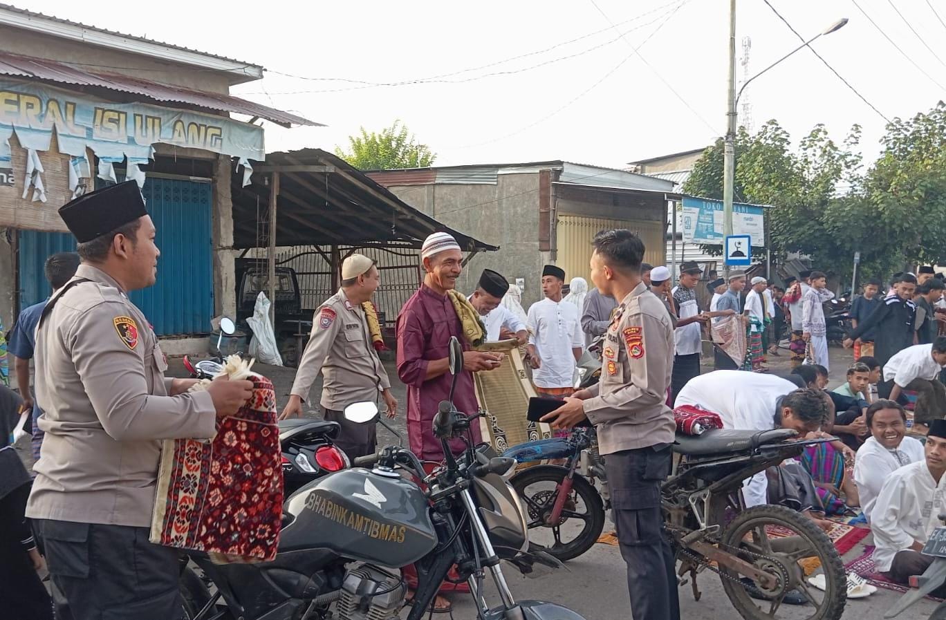 “Kami melakukan patroli rutin di sekitar area pelaksanaan sholat untuk mencegah terjadinya tindak kriminalitas, serta melakukan pengaturan arus lalulintas agar pelaksanaan ibadah berjalan aman, nyaman dan tertib.”Jelasnya