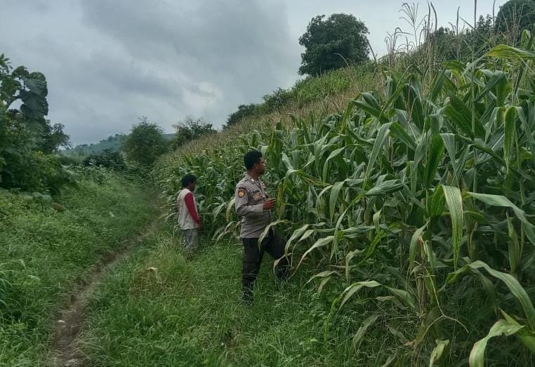 Hal itu ditunjukkan oleh Bhabinkamtibmas Polsek Soromandi Brigpol Sukarna mengecek lahan jagung milik warga binaannya di Desa Sampungu Kecamatan Soromandi Kabupaten Bima pada Selasa(01/4/25) Siang kemarin.