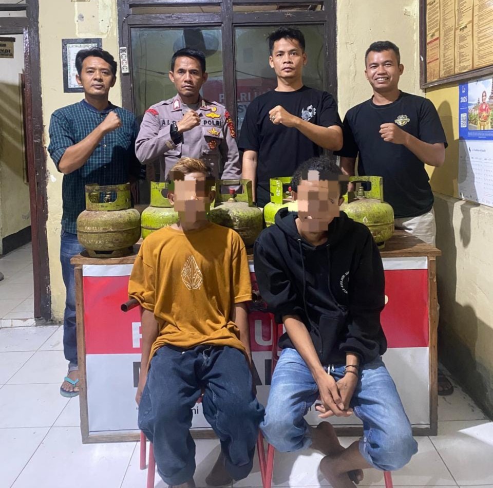 2 orang terduga pelaku yang diamankan masing masing berinisial D (L/16) dan IS (L/23)Keduanya merupakan warga Desa Dena, keduanya di duga kuat melakukan Pencurian Tabung Gas Elpiji ukuran 3 Kg milik korban berinisial R (P/35) yang juga warga Desa Dena.