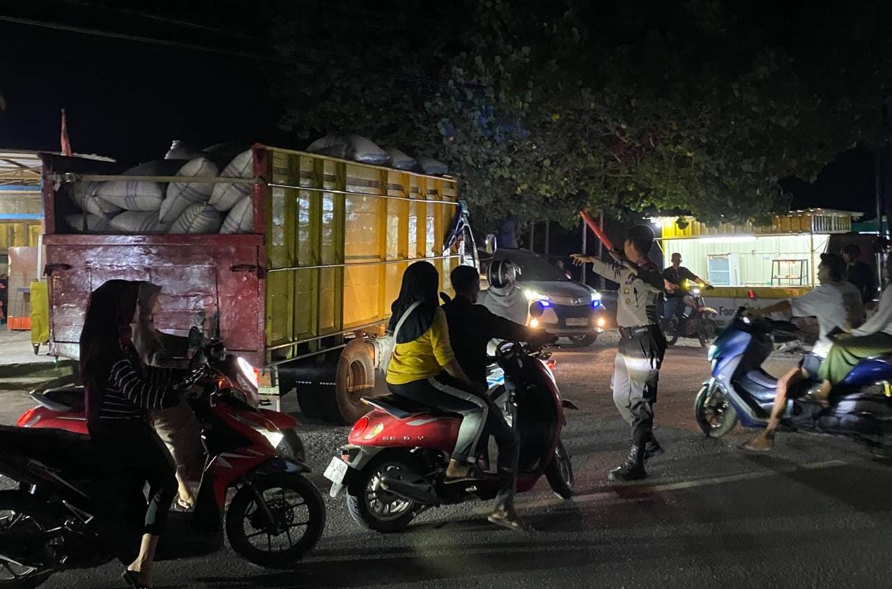 Sabtu, (5/04/25) sekira pukul 19.00. Wita Personel Polres Bima Polda NTB yang bertugas di pos pengamanan Operasi Ketupat Rinjani 2025 dalam rangka memberikan rasa aman dan kepada para pemudik Baik yang menggunakan roda dua maupun roda empat melakukan pengaturan lalulintas di sekitar Pos Pam Bolo.