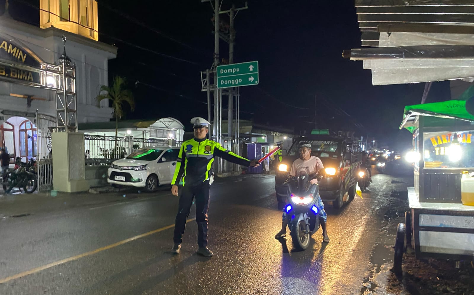 Bima, NTB (10 April 2025) – Pada selasa 8 April 2025 sekira pukul 20.00 Wita.personel Pos PAM Operasi Ketupat Rinjani tingkat Polres Bima Polda NTB melaksanakan pengaturan arus lalulintas bertempat di depan Masjid Al-Amin Desa Rato Kecamatan Bolo Kabupaten Bima.