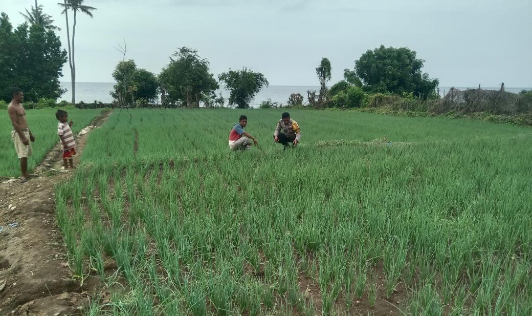 Rabu (9/4/25) sekira pukul 16.30.wita sore kemarin Brigpol Sukarna menyambangi lahan seluas satu hektare milik warga yang ditanami bawang merah di Desa Sampungu Kecamatan Soromandi Kabupaten Bima.
