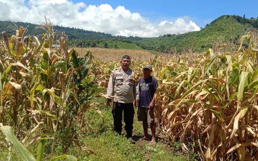 Bima, NTB (12 April 2025) – Wujud dukungan terhadap program ketahanan pangan nasional, Bhabinkamtibmas Polsek Tambora Polres Bima Polda NTB Aipda I Gusti Agung Astika melaksanakan pengecekan tanaman jagung di lahan Warga Binaan