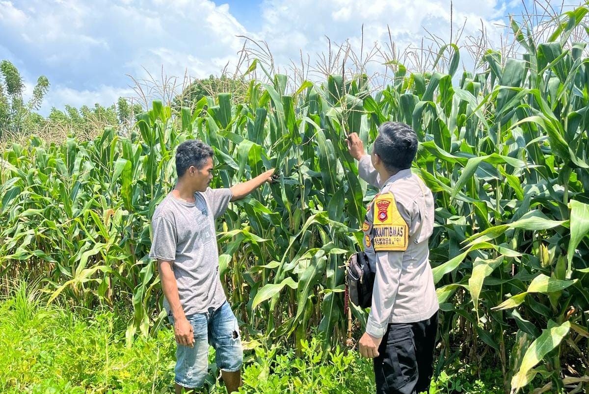 Bima, NTB (13 April 2025) – Mendukung program ketahanan pangan nasional, Bhabinkamtibmas Polsek Tambora Polres Bima Polda NTB Brigpol Martinus Roby SH melaksanakan kegiatan peninjauan serta monitoring pertumbuhan jagung.