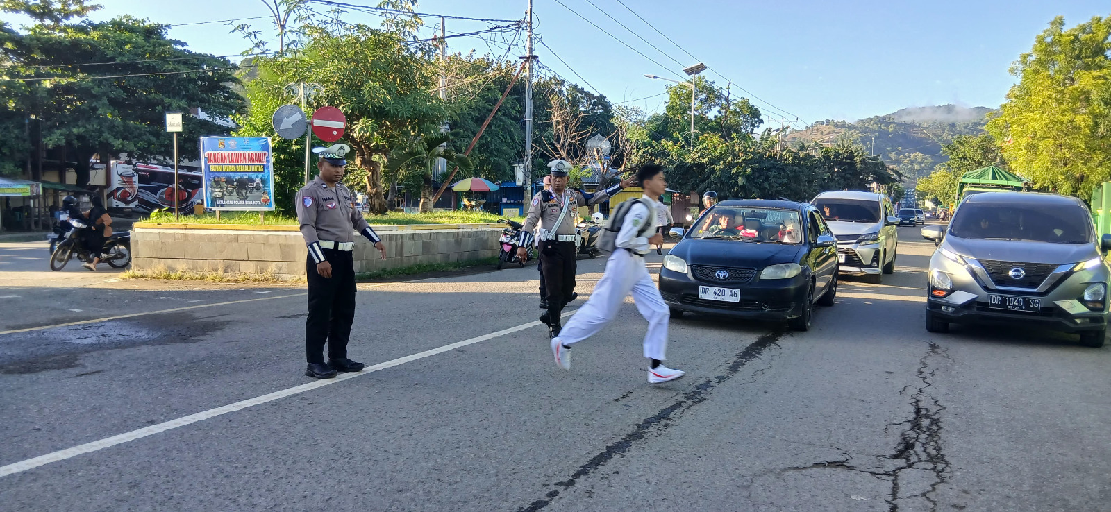 “Personel Polsek Rasanae Barat hadir di titik-titik rawan pada pagi hari untuk membantu kelancaran lalu lintas, memberikan pelayanan kepada masyarakat, serta menyampaikan imbauan Kamseltibcarlantas kepada pengendara dan para pengantar siswa,” jelas Ipda Baiq.