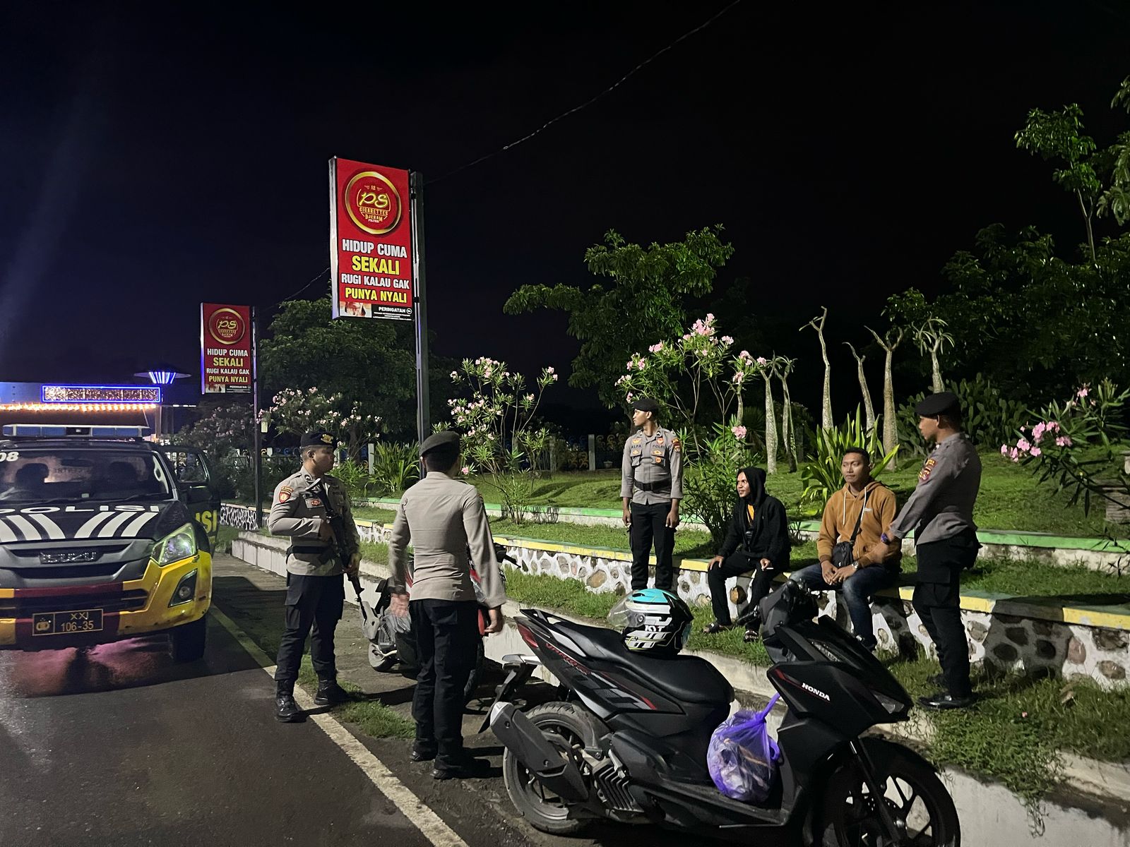 Kota Bima, NTB (11 Mei 2025) – Guna menjaga situasi kamtibmas tetap aman dan kondusif, Satuan Samapta Polres Bima Kota menggelar patroli malam pada Minggu (11/5), sekitar pukul 20.30 WITA, yang dipusatkan di kawasan Taman Ni’u, Kota Bima.