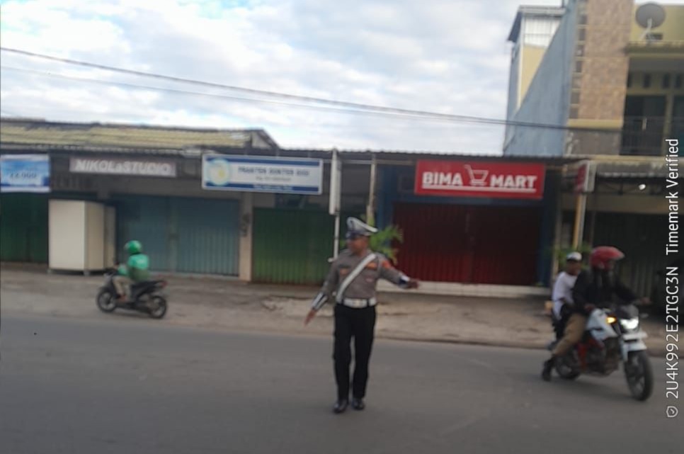 Sat Lantas Polres Bima Kota Laksanakan Rawan Pagi, Bantu Penyeberangan Pejalan Kaki dan Anak Sekolah