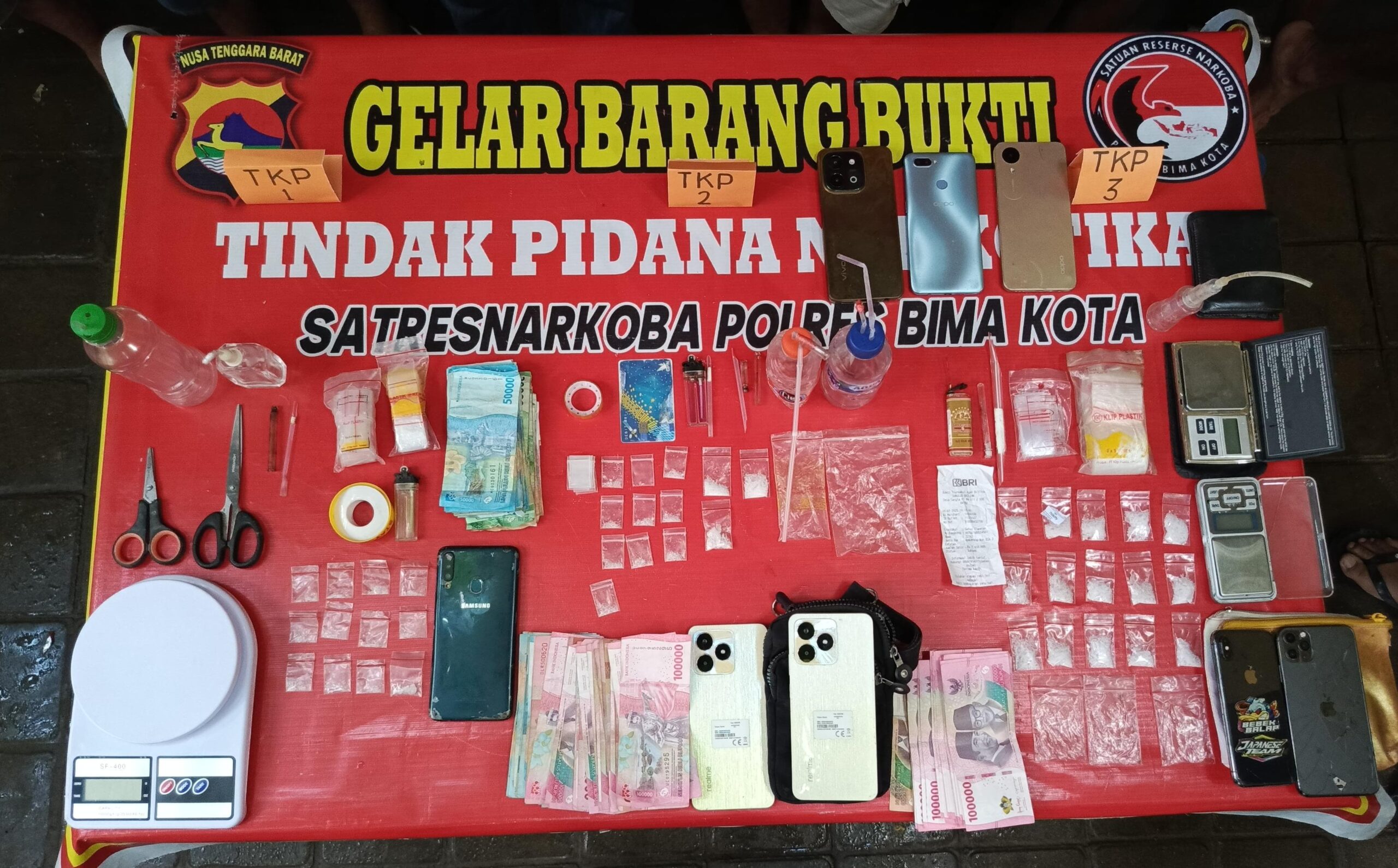 Kota Bima, NTB (06 Juli 2025) – Tim Opsnal Satuan Reserse Narkoba (Sat Resnarkoba) Polres Bima Kota kembali menorehkan prestasi dalam pemberantasan narkotika. Sebanyak enam orang terduga pengedar sabu dan 40 poket sabu seberat brutto 23,40 gram berhasil diamankan dalam penggerebekan yang berlangsung di wilayah Kecamatan Sape dan Kecamatan Lambu, Kabupaten Bima.