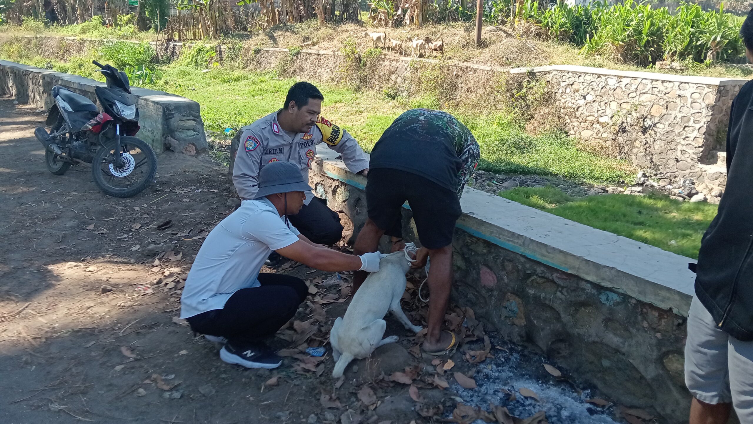 “Bhabinkamtibmas hadir untuk mendampingi dan memastikan kegiatan vaksinasi anjing rabies berjalan aman, tertib, serta mendapat dukungan dari masyarakat,” ujar Ipda Baiq Fitria.