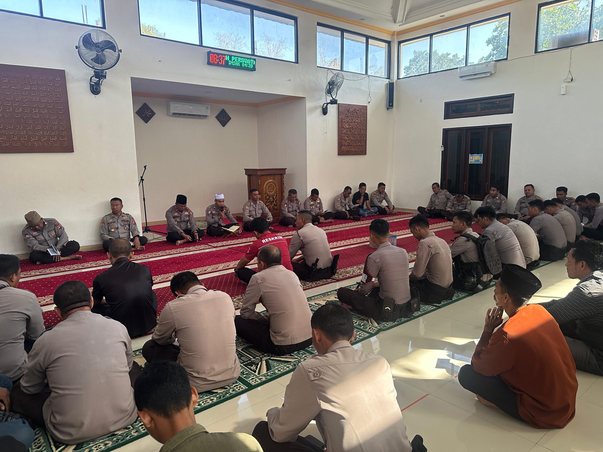 Kota Bima, NTB (4 September 2025) – Personel Polres Bima Kota kembali melaksanakan kegiatan rutin pembinaan rohani dan mental (Binrohtal) pada Kamis (4/9/2025) pukul 08.30 Wita bertempat di Masjid Jabal Qubis Polres Bima Kota. Kegiatan ini diikuti oleh seluruh personel dan ASN Polres Bima Kota yang beragama Islam.